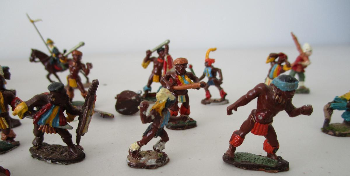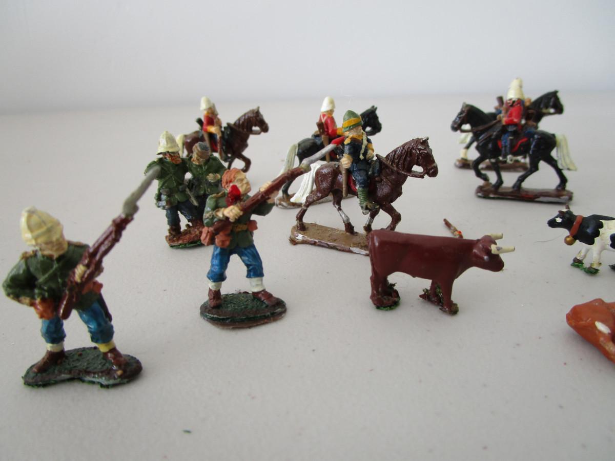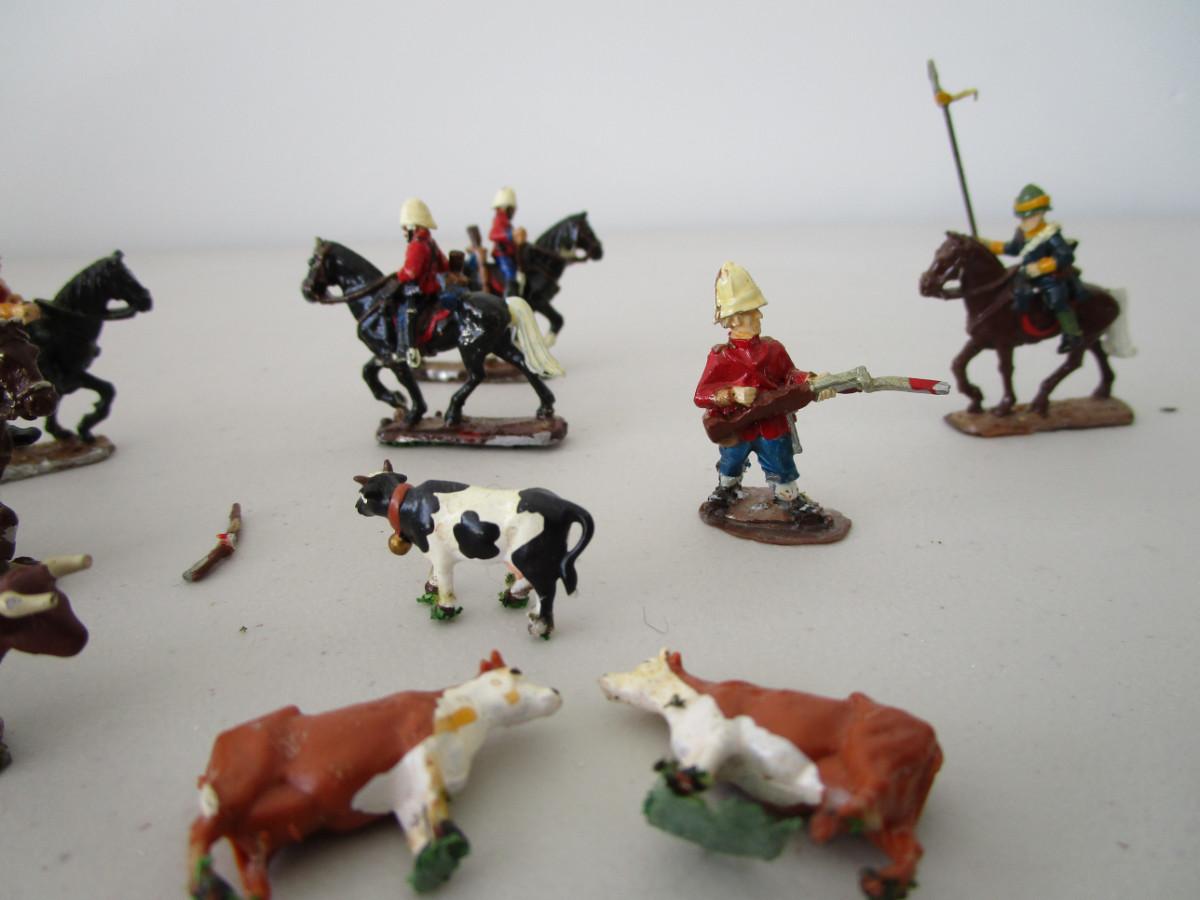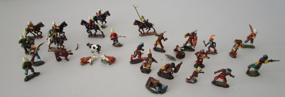 Soldiers, indians, two fireman, cows, 1 1/2" tall