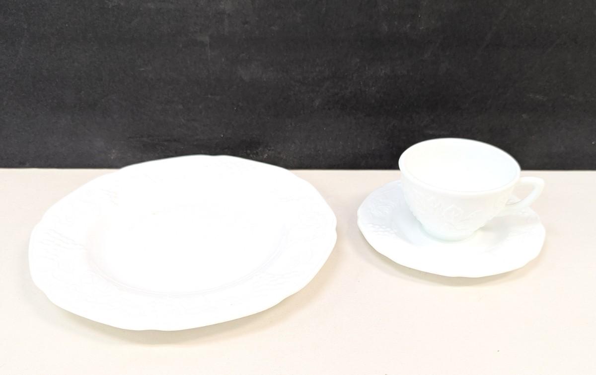 21 Pieces Of Vintage Milk Glass Dinner Set