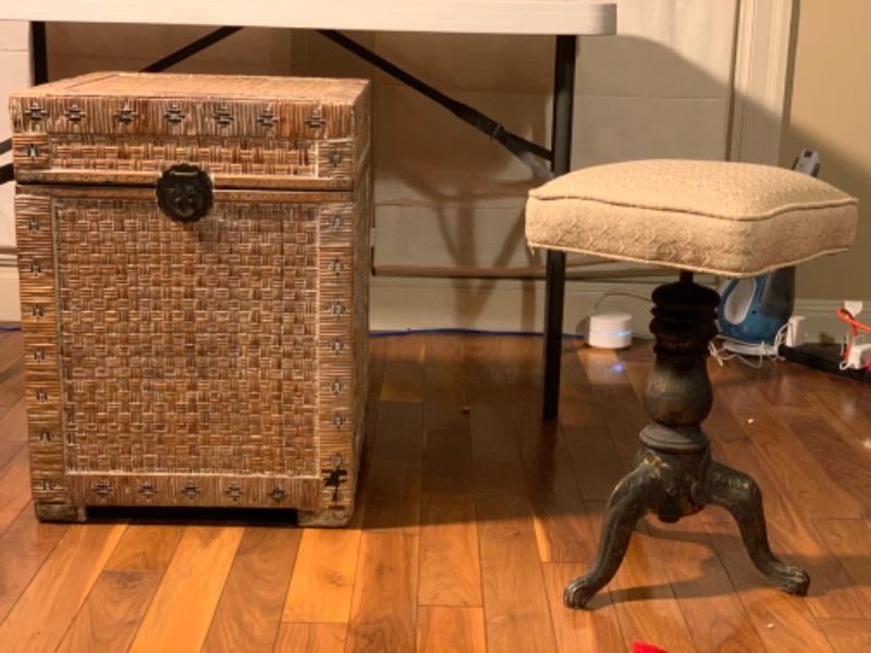 Wicker and Wood Hamper and Piano Stool. Was $55