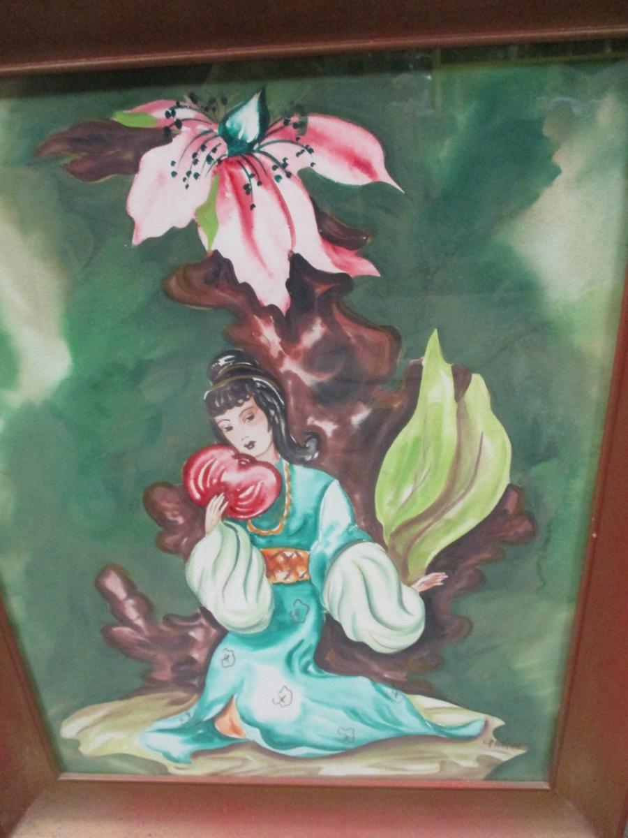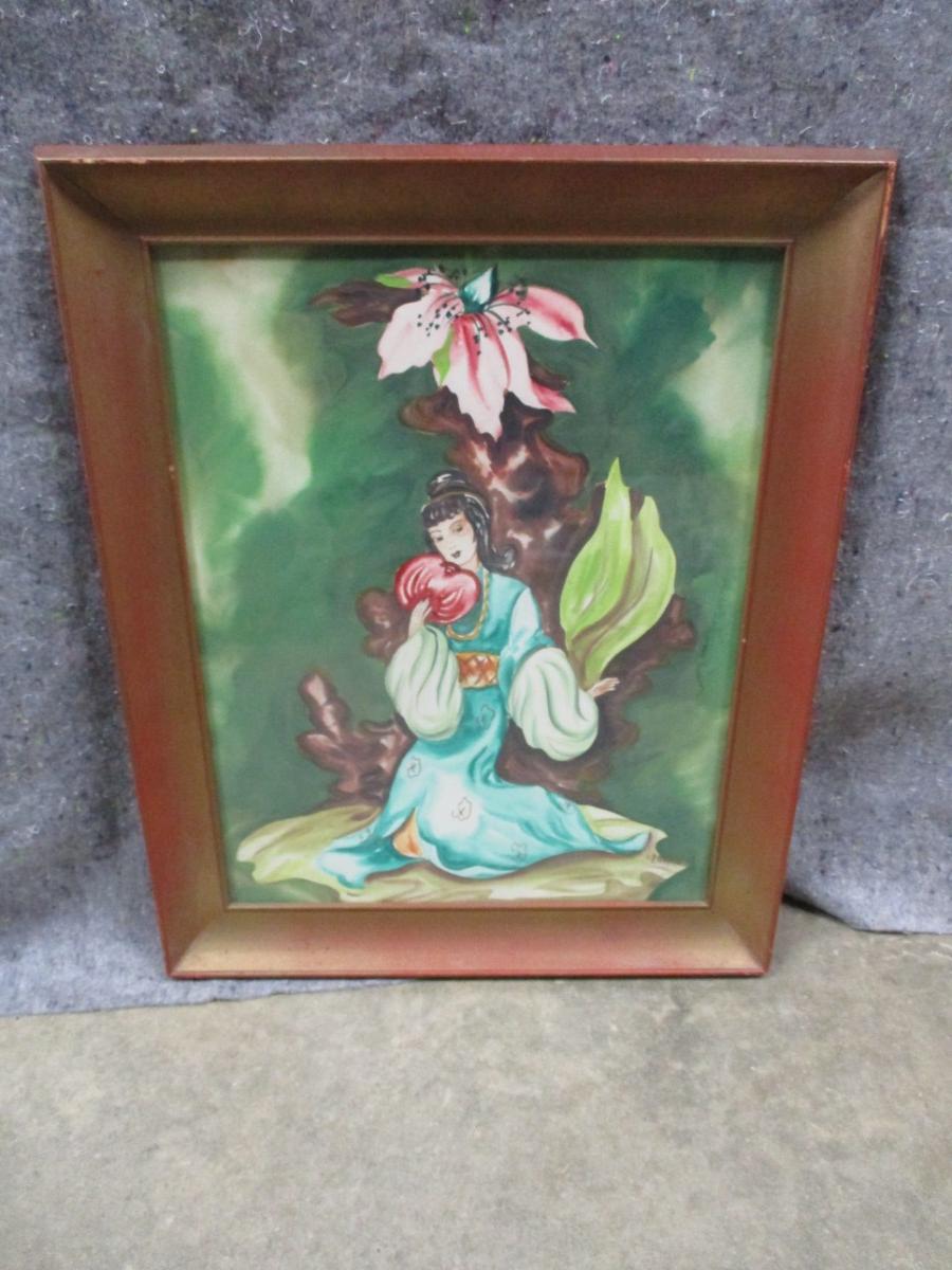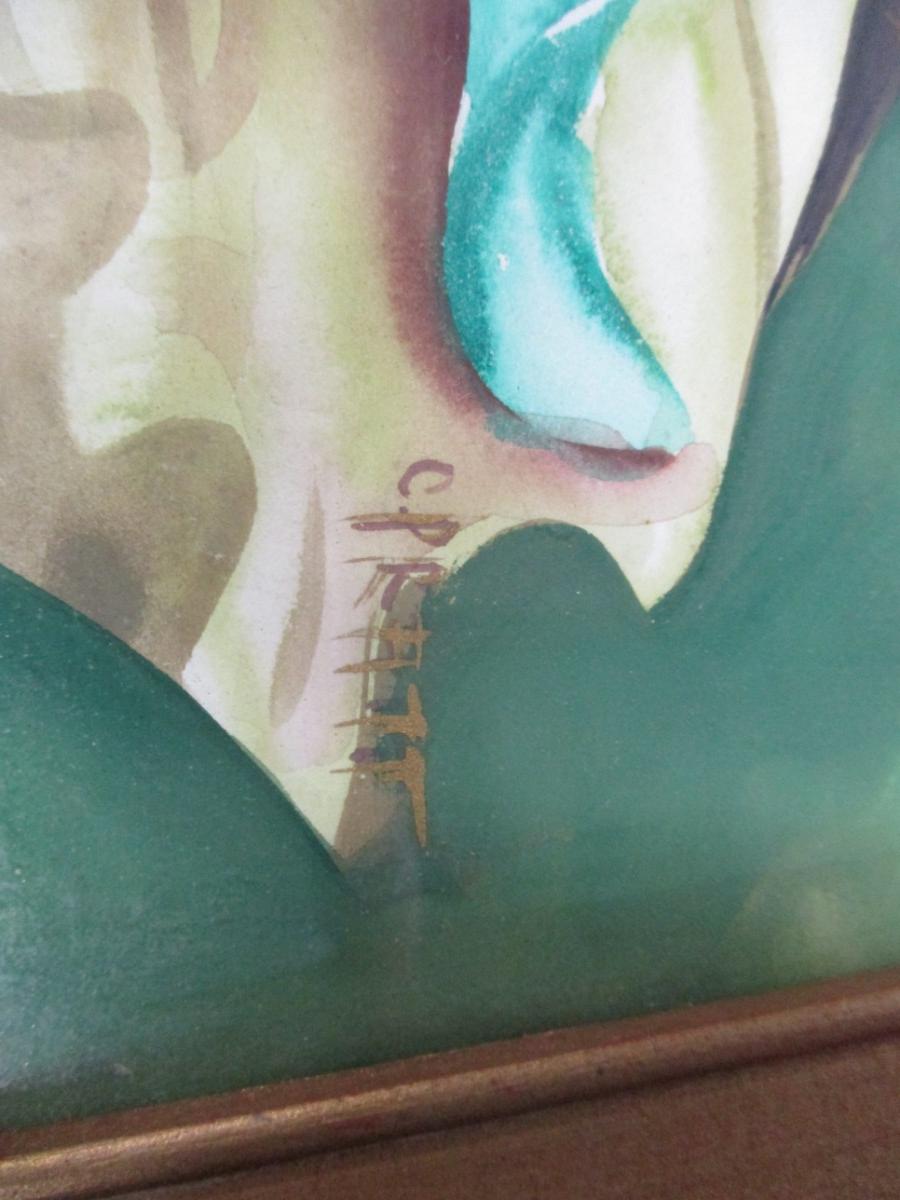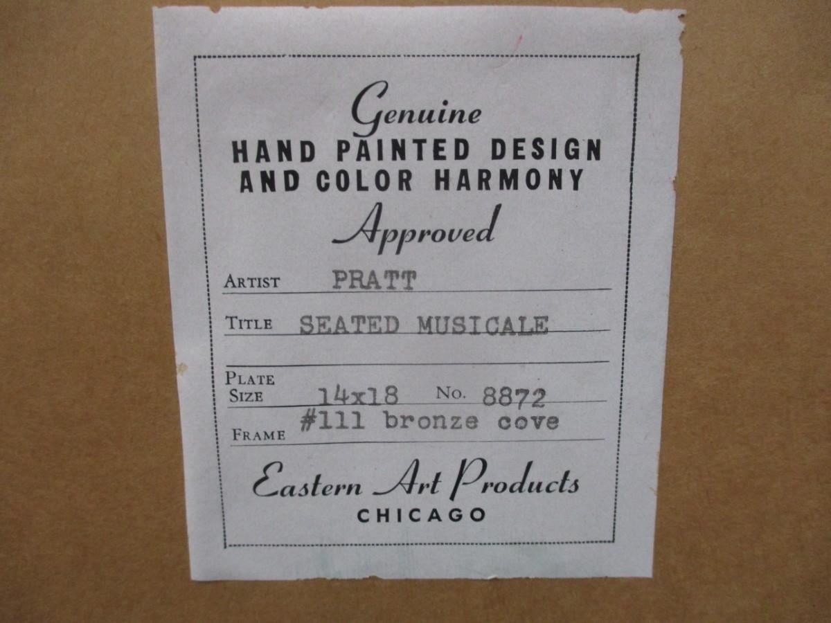 Framed Art "Seated Musical" Signed by C. Pratt Hand Painted Set in Bronze Cove Frame 21" x 17 1/8"