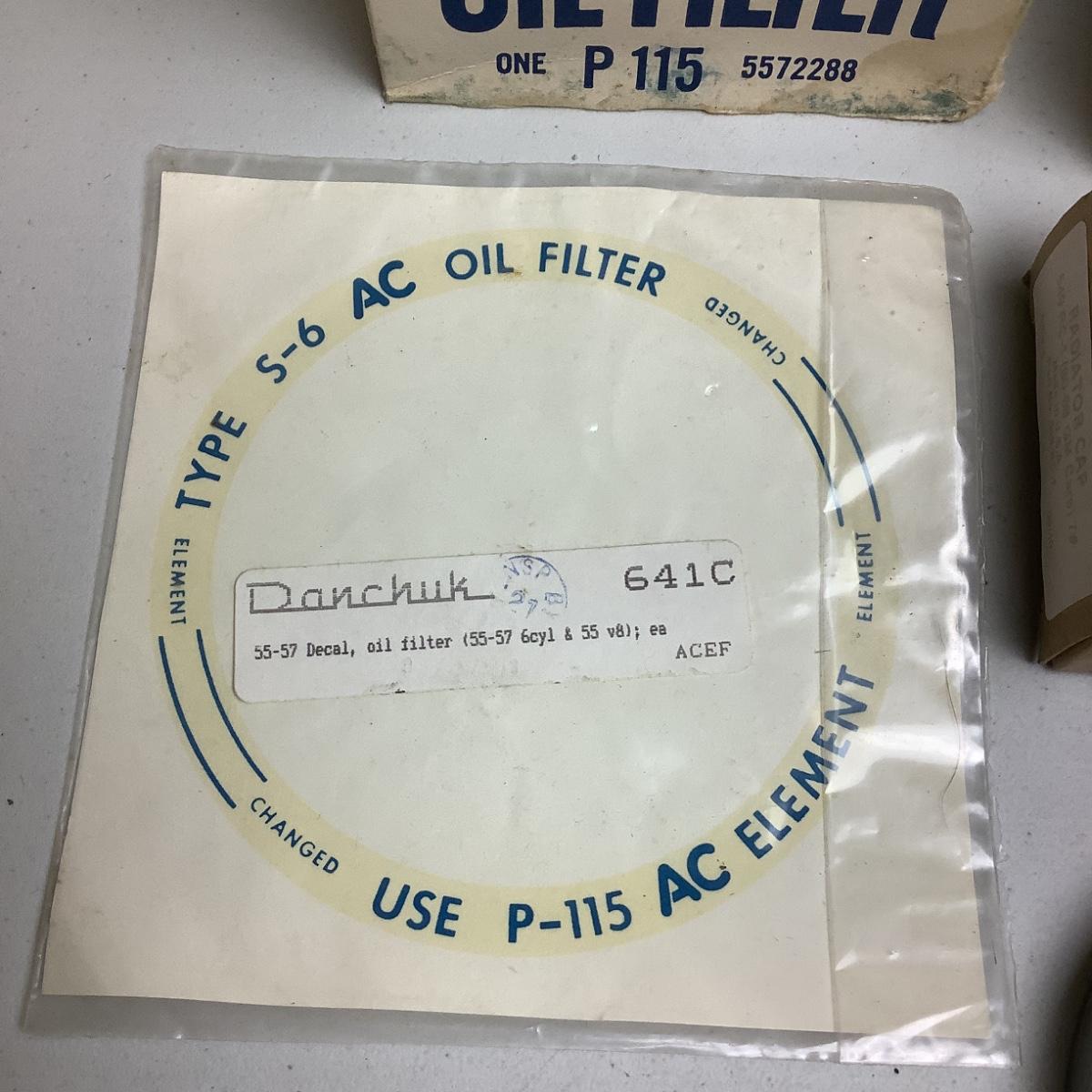 210 1955-57 Chevrolet Radiator Caps / Distributor Cap 6cyl / Oil Filter Decal