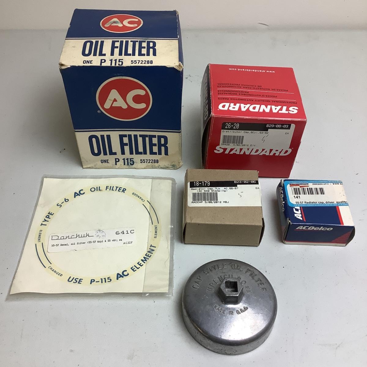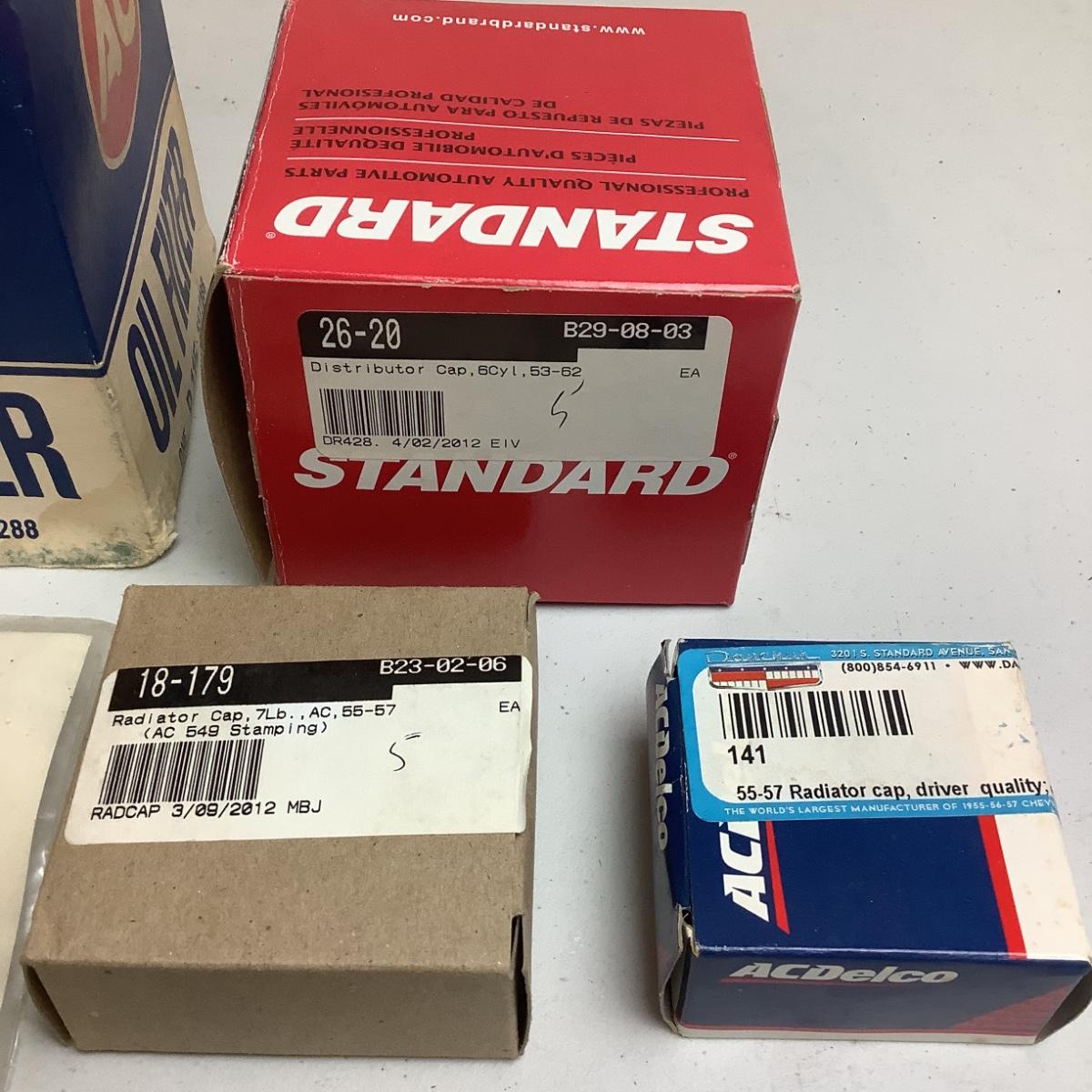 1955-57 Chevrolet Radiator Caps / Distributor Cap 6cyl / Oil Filter Decal