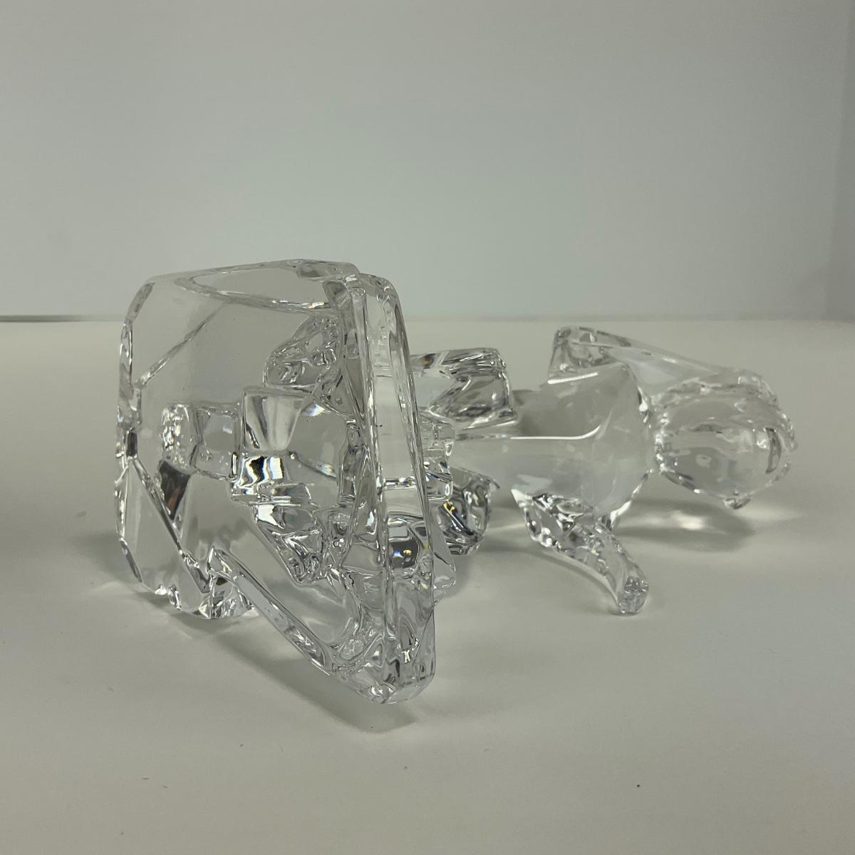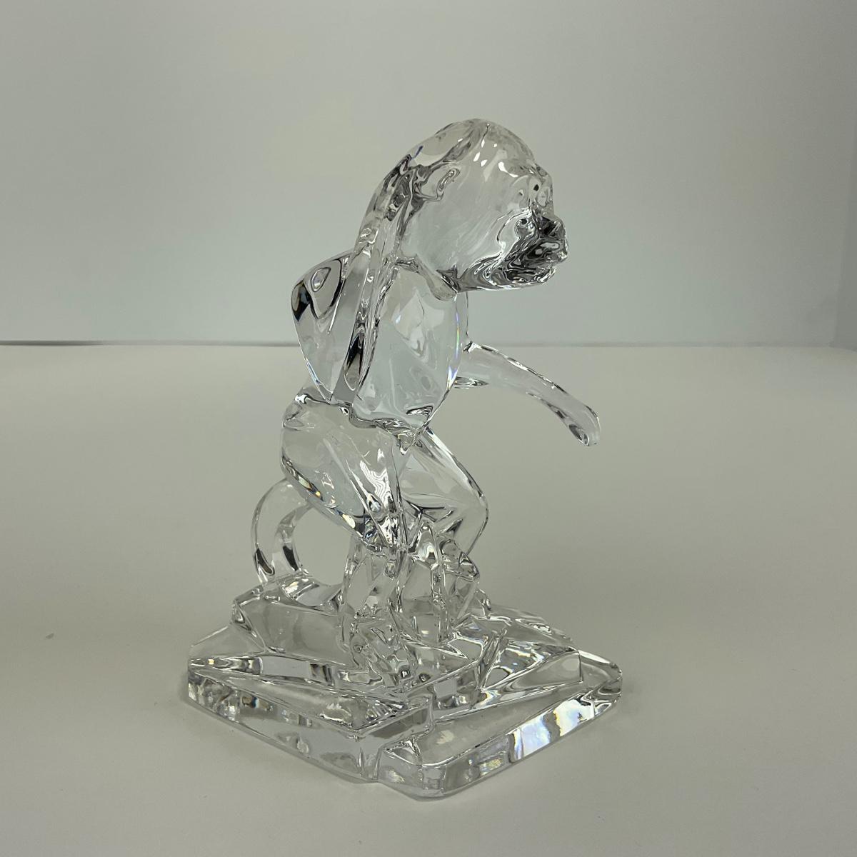 One believed to be made in Italy Kristal Color Crystal Monkey figure. This piece has no damage, and appears to be in great shape with no visable chips, cracks, or broken pieces. Please see photos for details and condition. Any condition statement is given as a courtesy to a client, is an opinion, and should not be treated as a statement of fact. Reference to condition written, oral or within a condition report shall not be regarded as a full account of condition and may not include all defects, alterations, or restorations. Absence of a condition report does not imply a lot is flawless or lacking imperfections or damage. Katherine’s Auction & Appraisal Service shall have no responsibility for any error or omission. Returns shall not be accepted on the basis of condition. ::: Shipping is available on this lot. If you require shipping you must let us know at the close of the auction. We will coordinate with you after the item has been won. Shipping fees will include insurance up to or exceeding the value of all items being mailed. If you have any questions regarding this lot please contact the auctioneer either via this website, by direct email or by phone. PICK UP TIMES and other important information can be found in the TERMS and DESCRIPTION of the auction. Please take a look for pertinent information. Thanks!