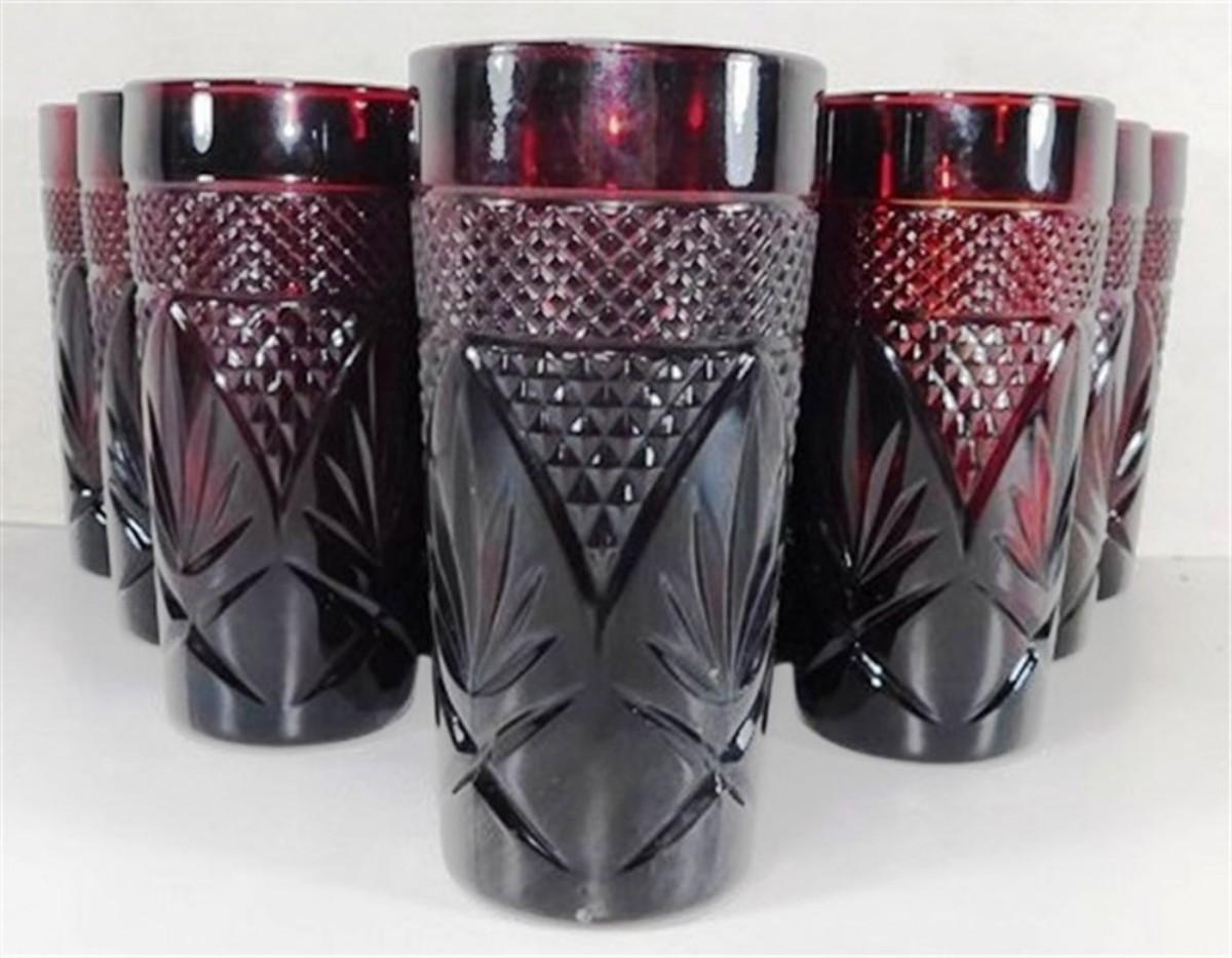 210 Lot of 13 Ruby Red Luminarc Cristal D' Arques Glass Tumblers 6 in