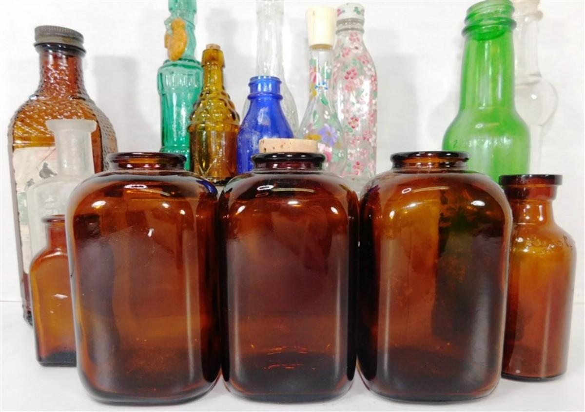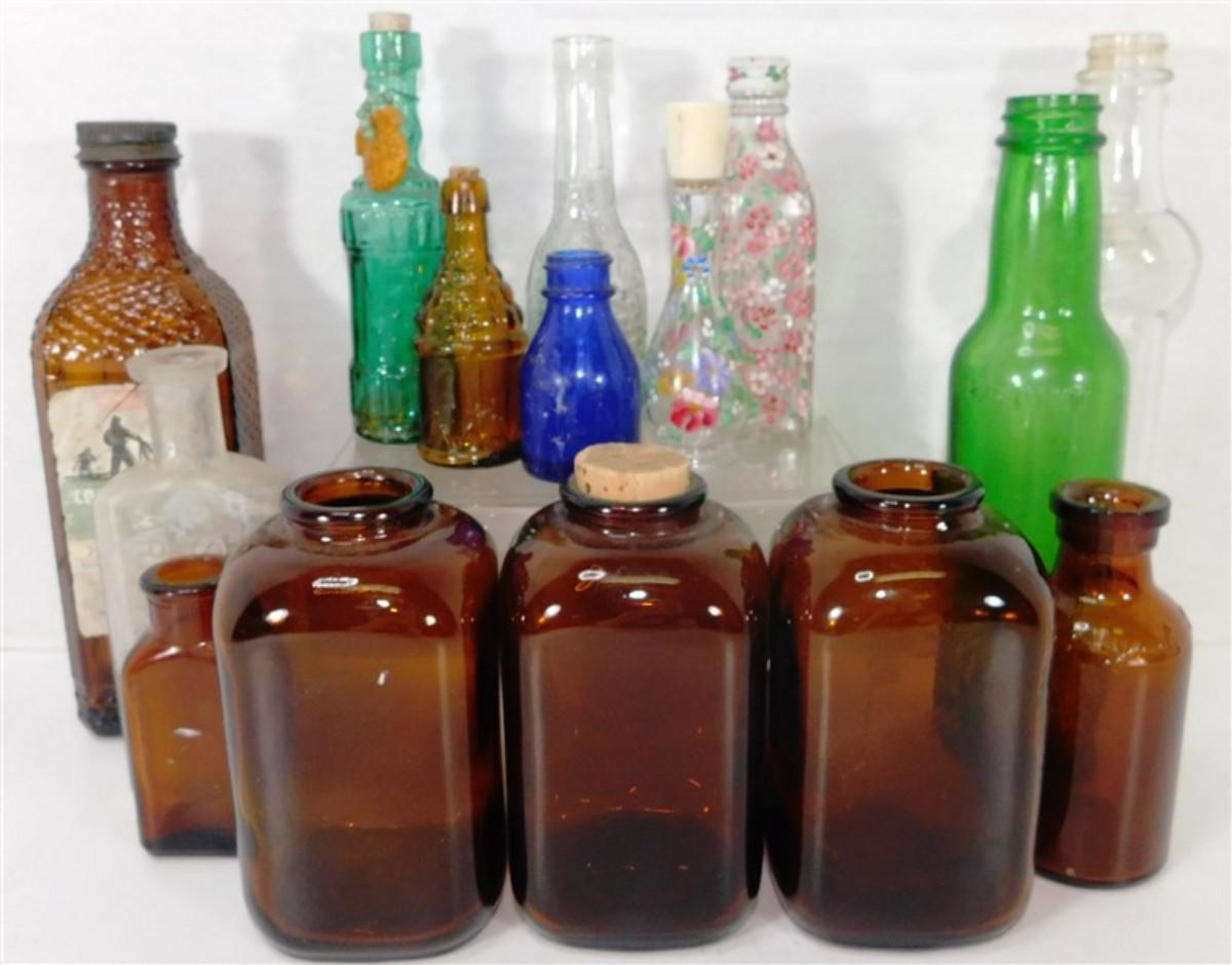 210 Lot of 15 Vintage Bottles Multiple Shapes and Sizes