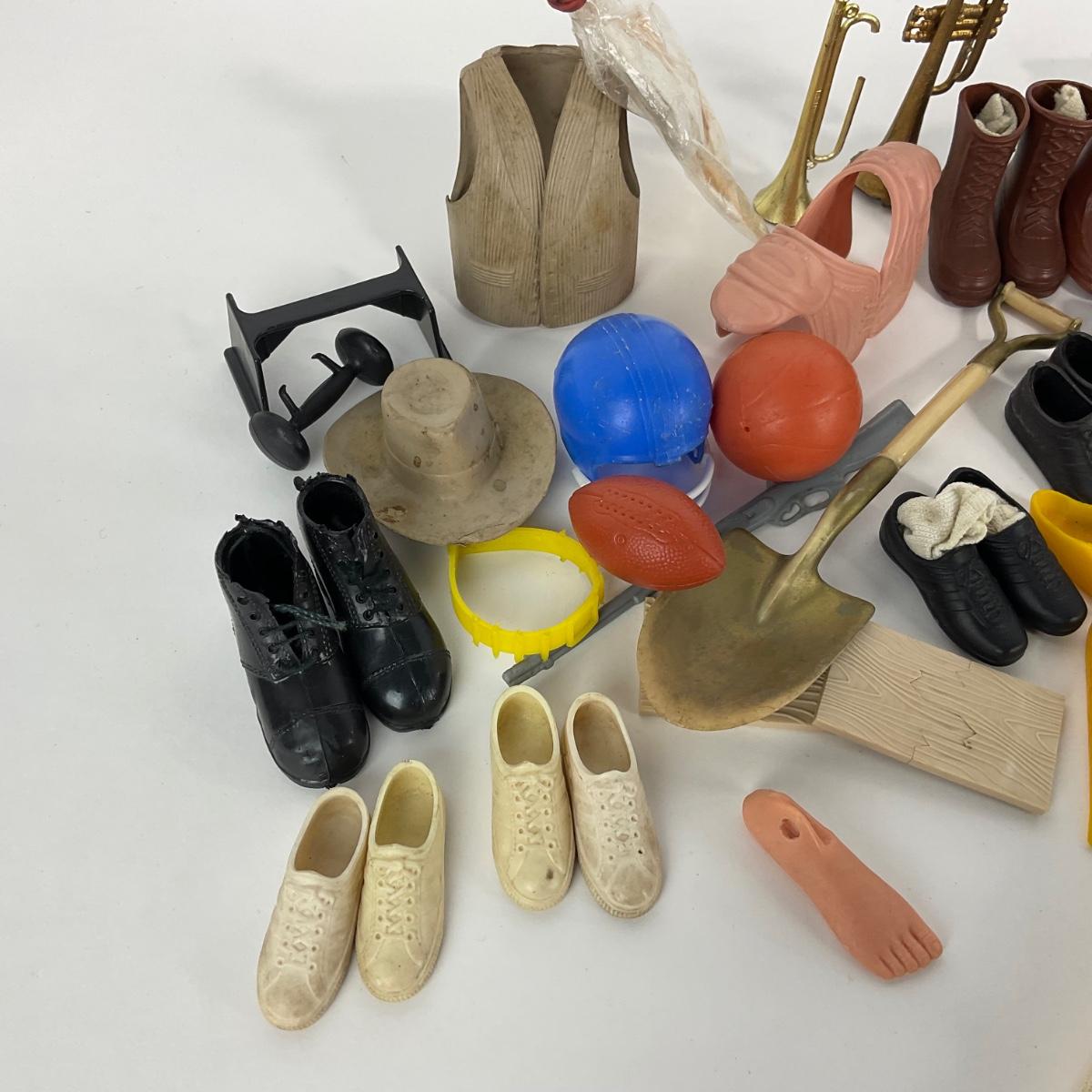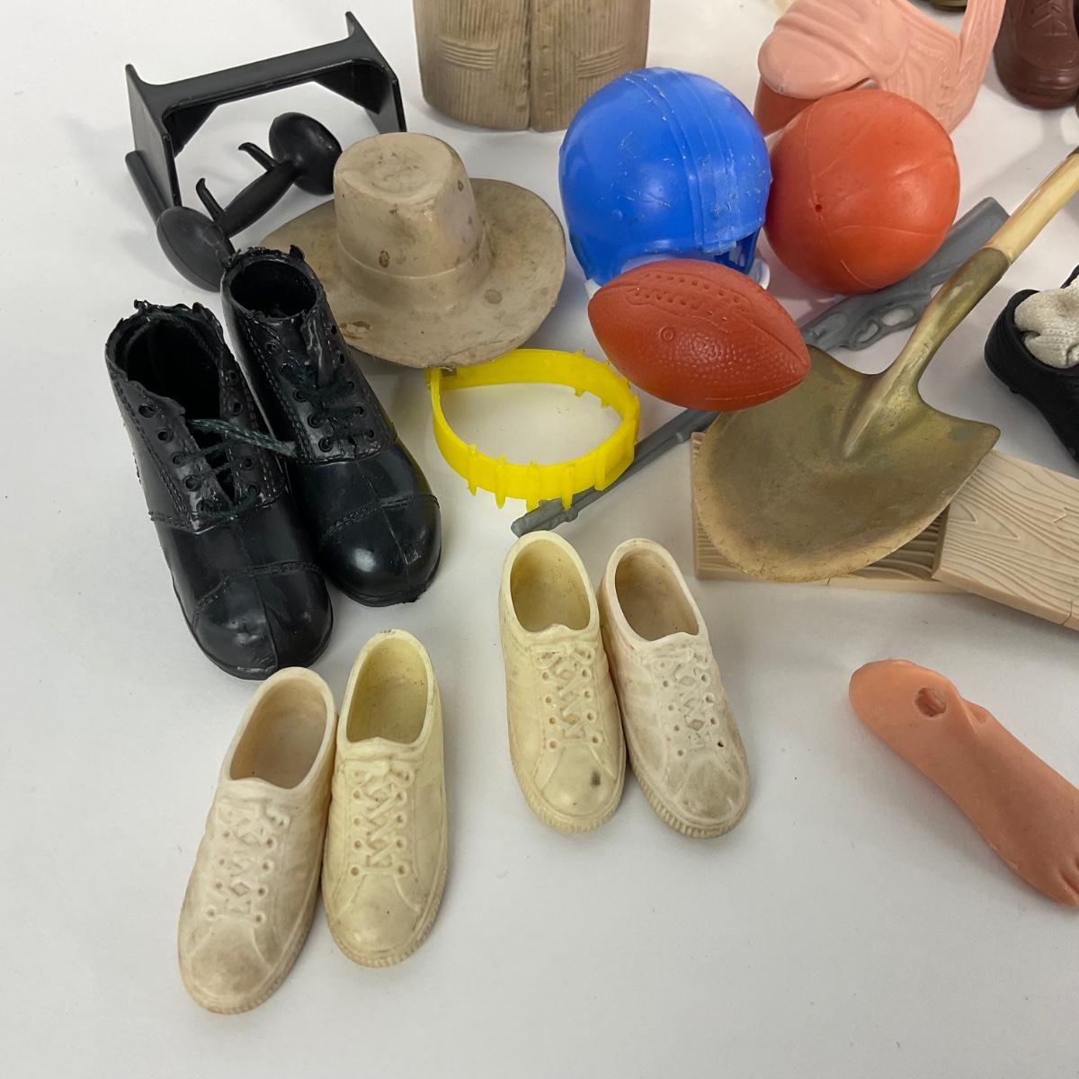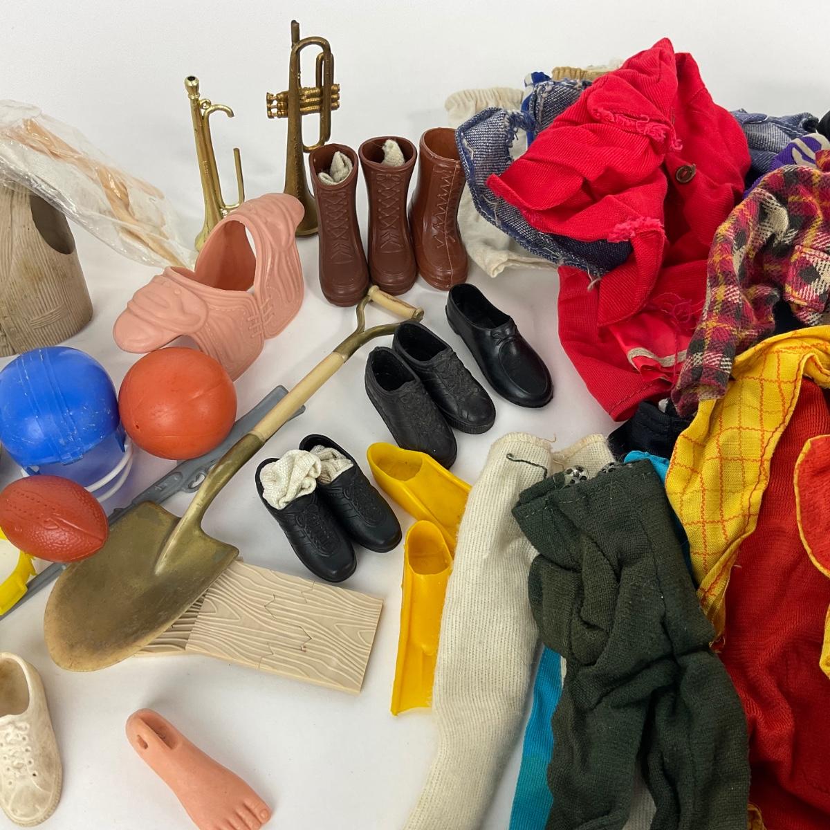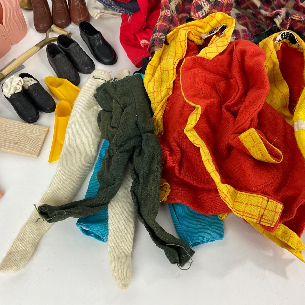 Lot of 1960’s vintage Ken Doll clothing and accessories. Please see photos for details and condition. ::: Shipping is available on this lot. If you require shipping you must let us know at the close of the auction. We will coordinate with you after the item has been won. Shipping fees will include insurance up to or exceeding the value of all items being mailed. If you have any questions regarding this lot please contact the auctioneer either via this website, by direct email or by phone. PICK UP TIMES and other important information can be found in the TERMS and DESCRIPTION of the auction. Please take a look for pertinent information. Thanks!
