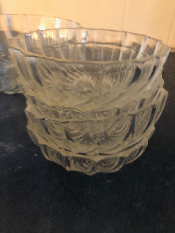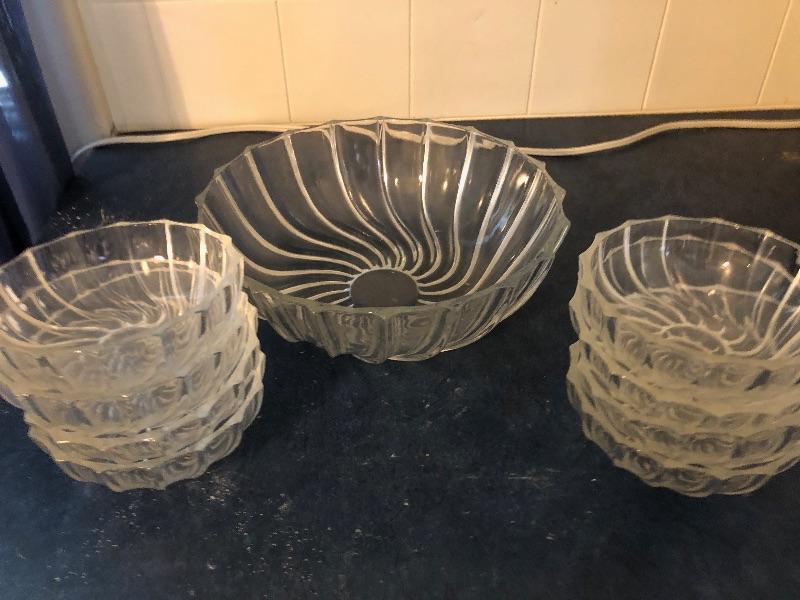 Includes large bowl and seven dessert cups. Great condition. This is an ONSITE Auction all items will need to be picked up on location. Please see auction description for pick up procedures.