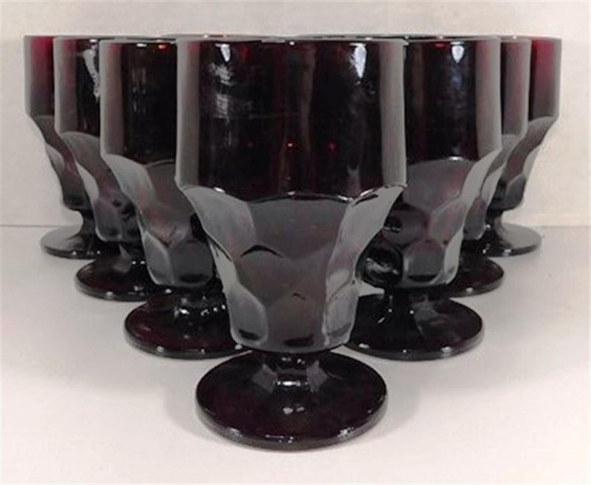 211 Lot of 10 Vintage Anchor Hocking Georgian Ruby Red Footed Ice Tea Glasses 5 1/2