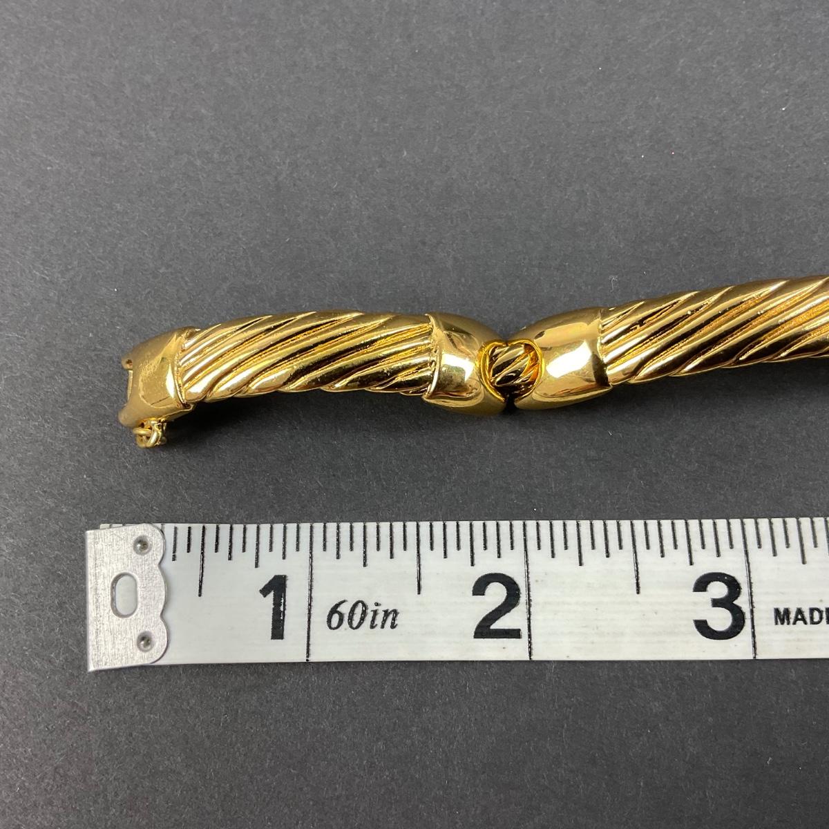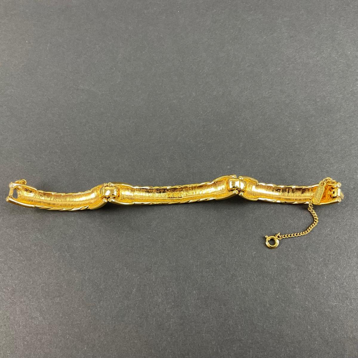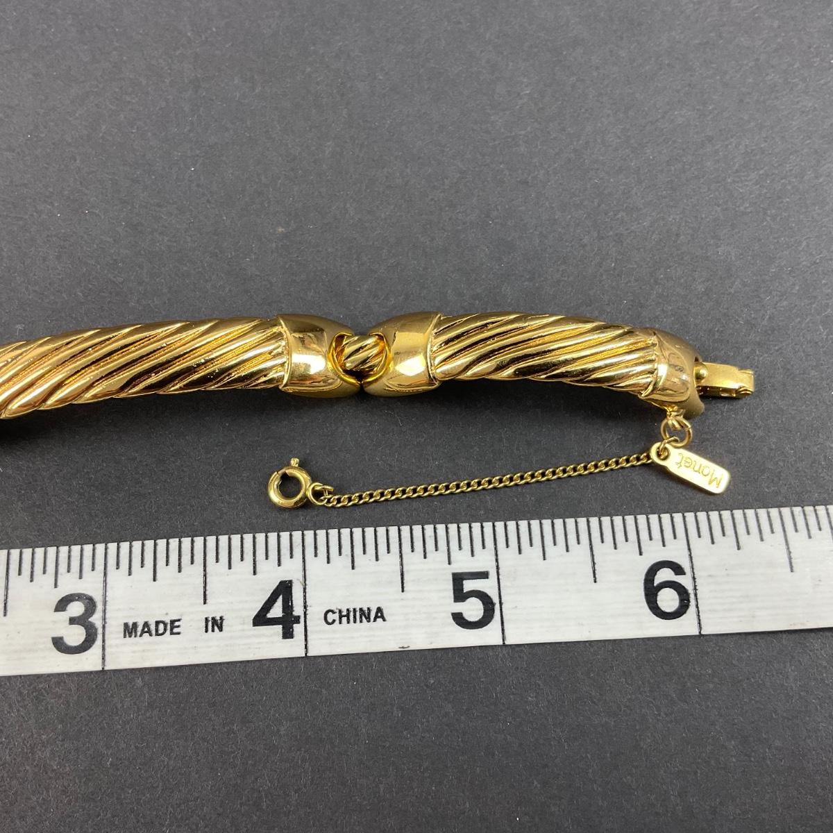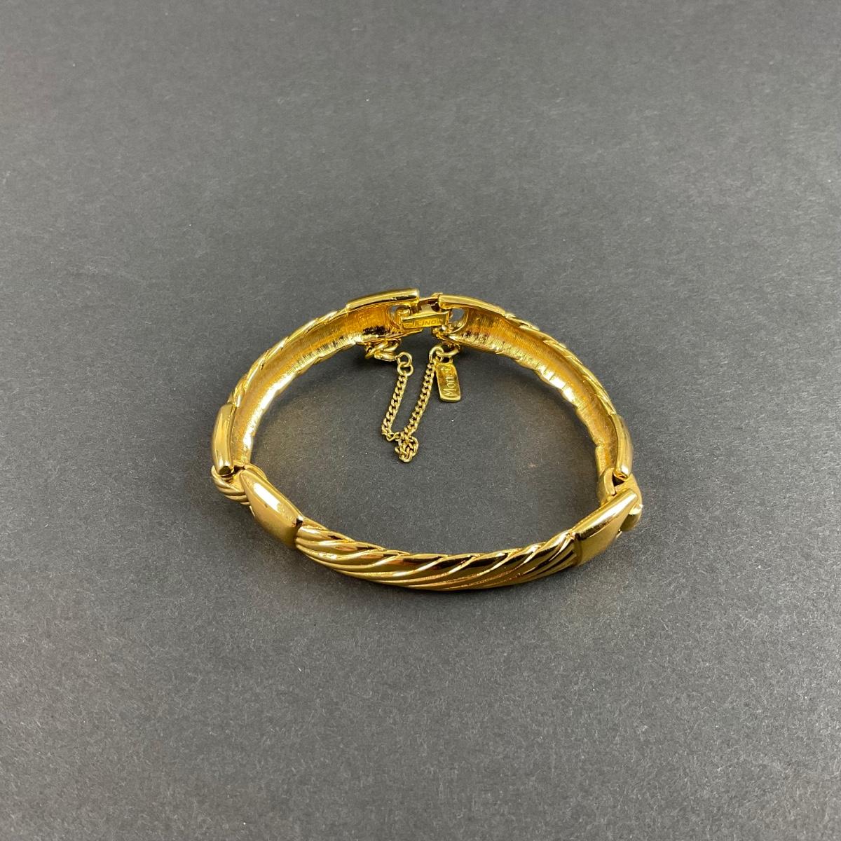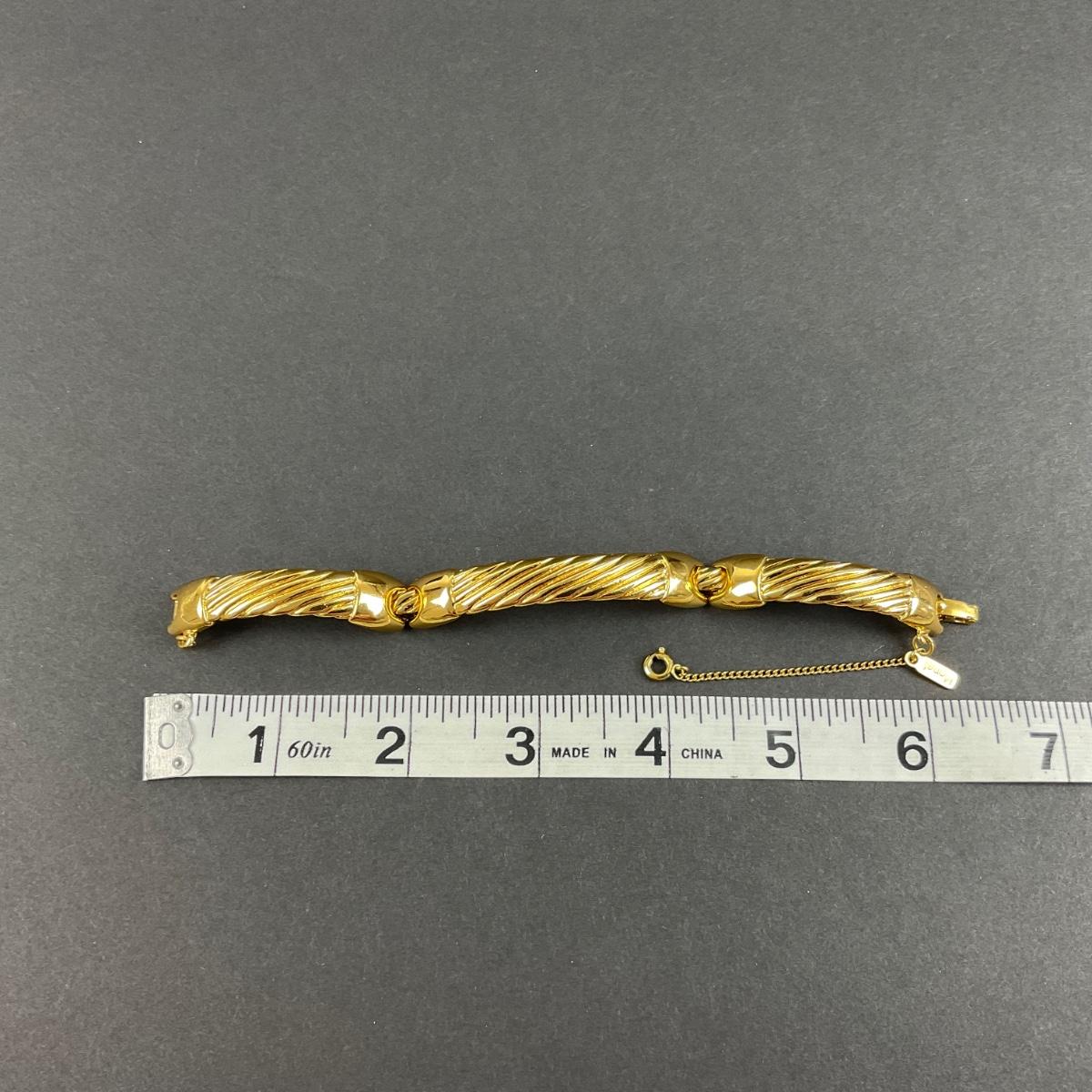 One marked Monet gold tone bracelet. Please see photos for details and condition. Any condition statement is given as a courtesy to a client, is an opinion, and should not be treated as a statement of fact. Reference to condition written, oral or within a condition report shall not be regarded as a full account of condition and may not include all defects, alterations, or restorations. Absence of a condition report does not imply a lot is flawless or lacking imperfections or damage. Katherine’s Auction & Appraisal Service shall have no responsibility for any error or omission. Returns shall not be accepted on the basis of condition. ::: Shipping is available on this lot. If you require shipping you must let us know at the close of the auction. We will coordinate with you after the item has been won. Shipping fees will include insurance up to or exceeding the value of all items being mailed. If you have any questions regarding this lot please contact the auctioneer either via this website, by direct email or by phone. PICK UP TIMES and other important information can be found in the TERMS and DESCRIPTION of the auction. Please take a look for pertinent information. Thanks!