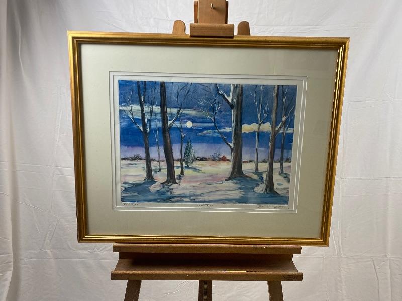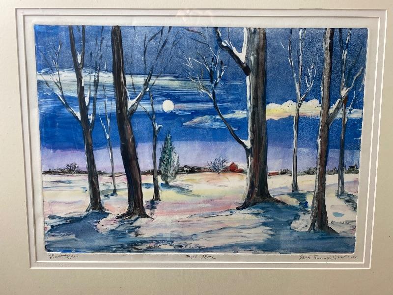 Beautiful Monotype by Jean Ranney Smith “˜04 Full Moon, in gold framing