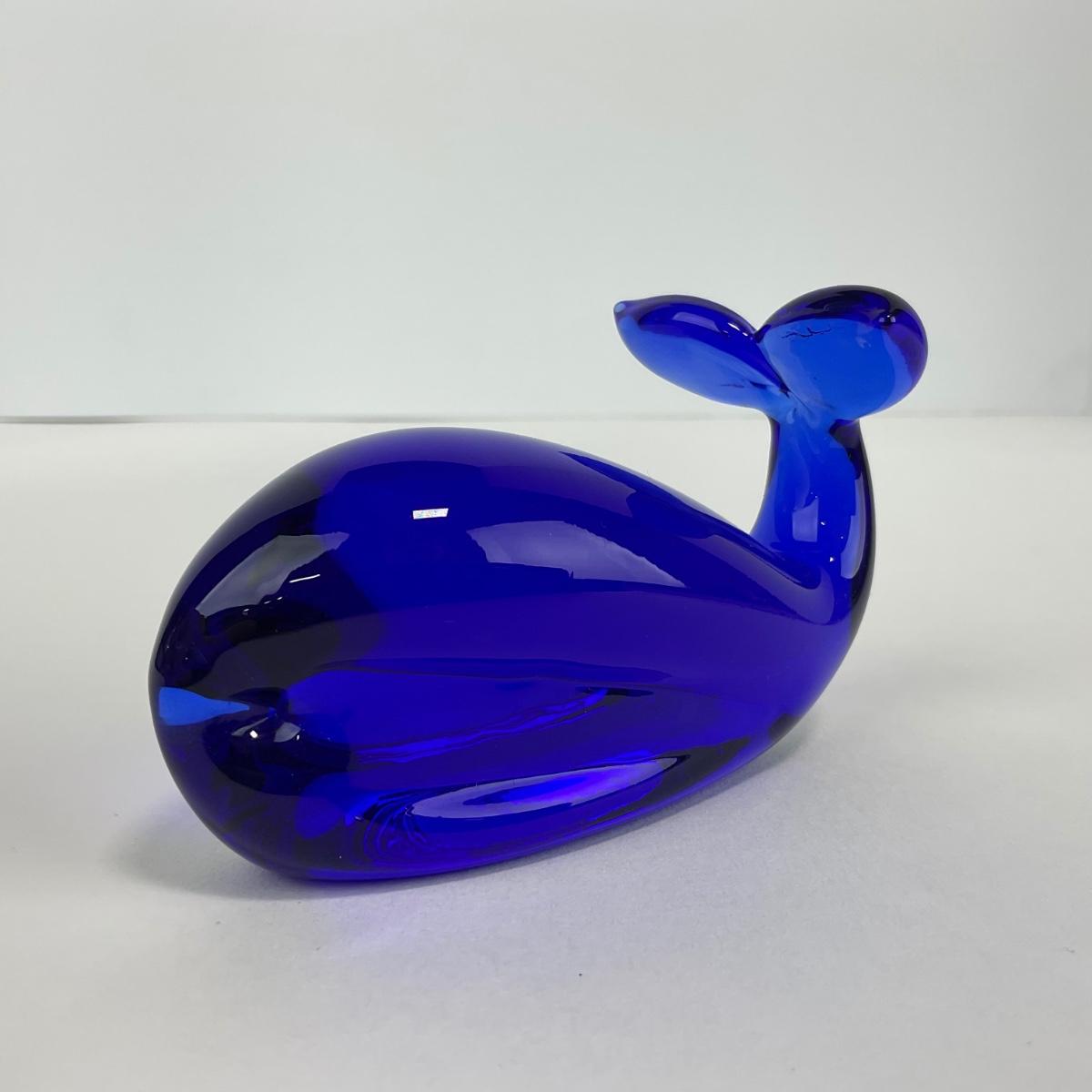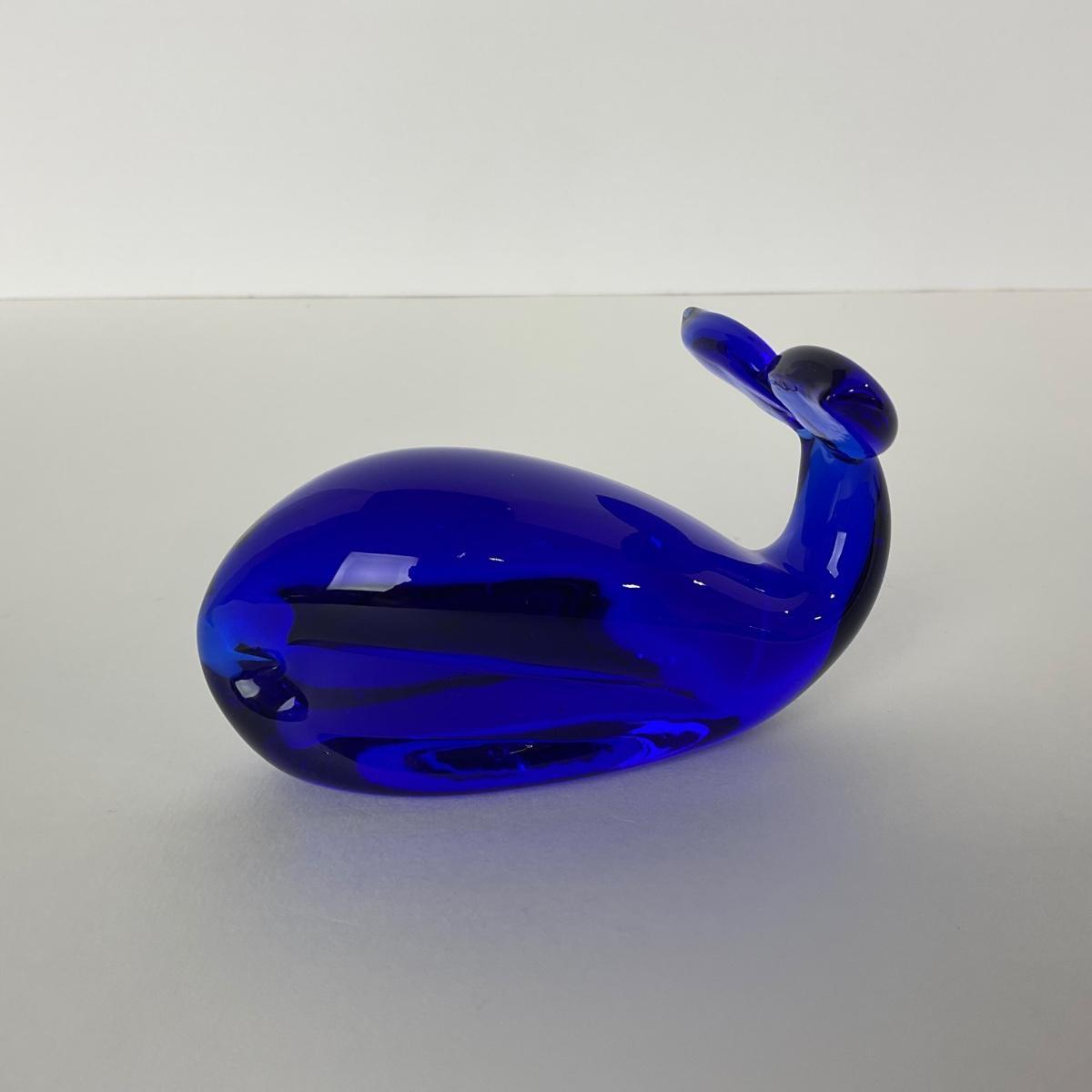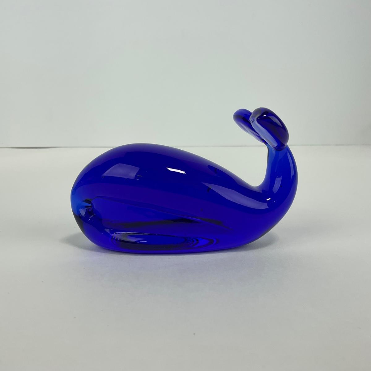 -211- PILGRIM | Viking Glass Cobalt Blue Whale Paperweight Figure