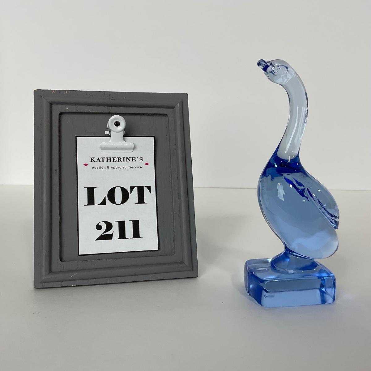 One unmarked light blue goose figure. 2 1/4 inches wide by 5 1/4 inches tall. The is a chip on the tail on the base of this piece but otherwise appears to be in good shape. Please see photos for details and condition. Any condition statement is given as a courtesy to a client, is an opinion, and should not be treated as a statement of fact. Reference to condition written, oral or within a condition report shall not be regarded as a full account of condition and may not include all defects, alterations, or restorations. Absence of a condition report does not imply a lot is flawless or lacking imperfections or damage. Katherine’s Auction & Appraisal Service shall have no responsibility for any error or omission. Returns shall not be accepted on the basis of condition. ::: Shipping is available on this lot. If you require shipping you must let us know at the close of the auction. We will coordinate with you after the item has been won. Shipping fees will include insurance up to or exceeding the value of all items being mailed. If you have any questions regarding this lot please contact the auctioneer either via this website, by direct email or by phone. PICK UP TIMES and other important information can be found in the TERMS and DESCRIPTION of the auction. Please take a look for pertinent information. Thanks!