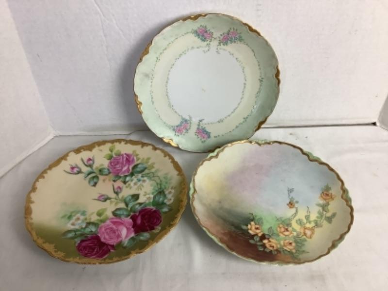 2116 Three Vintage Hand Painted Plates Bavaria Germany and Limoges France