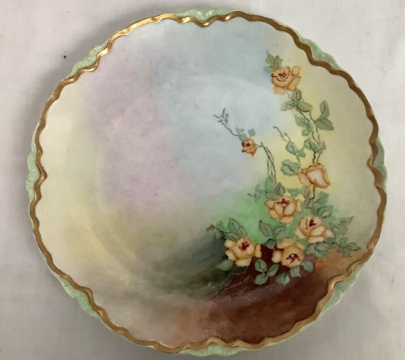Two Bavaria Germany hand painted decorative plates measuring 9-1/2” and one Limoges France hand painted decorative plate measuring 9-1/2” all in excellent condition, no chips or cracks