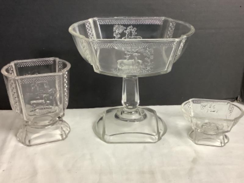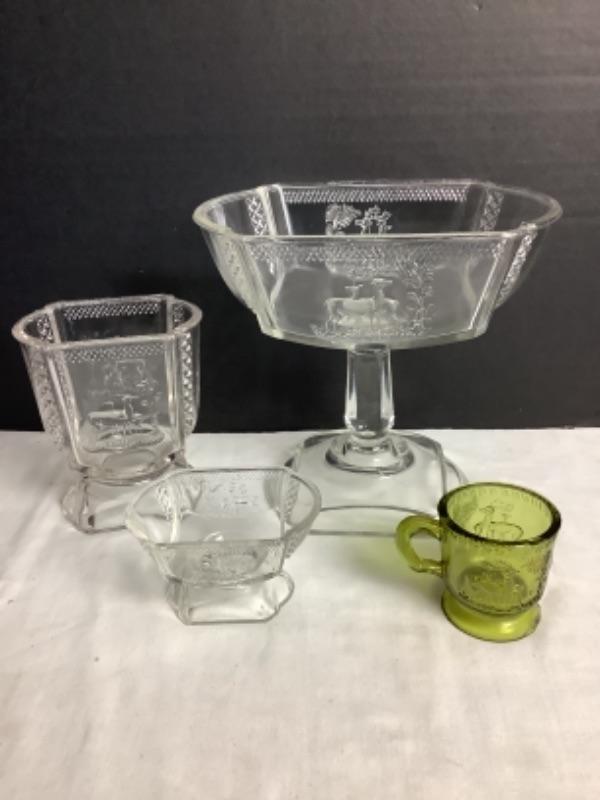 2118 Four Pieces of Antique McKee Brothers Deer and Pine Pressed Glass