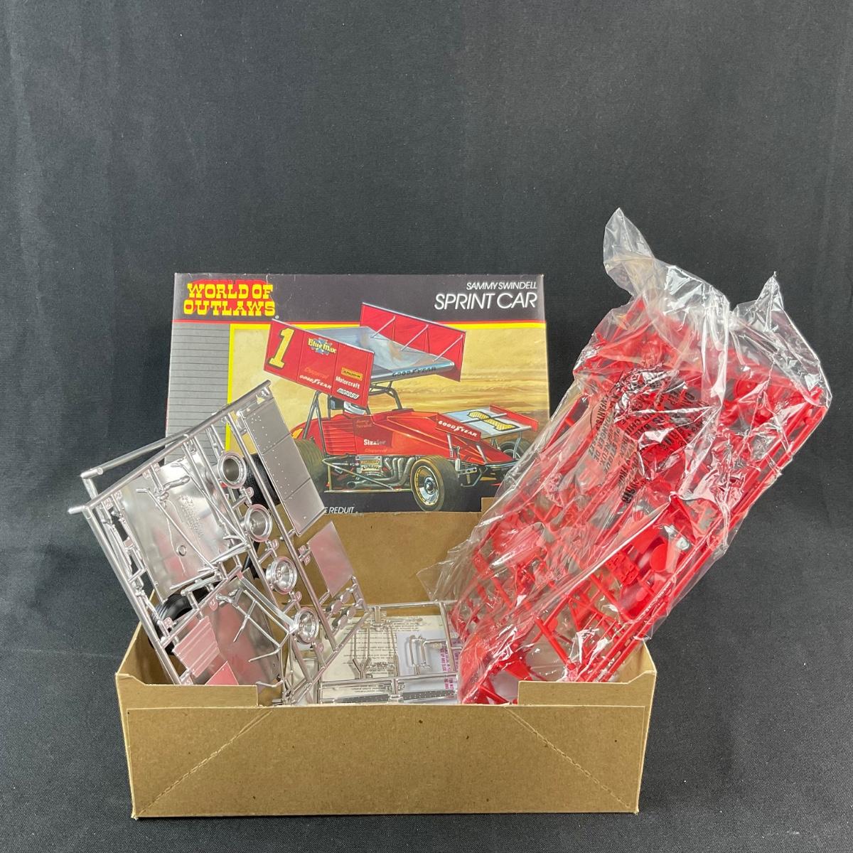 One opened 1:24 scale Sammy Swindell sprint car model kit. This piece is opened and assumed to be complete, however not guaranteed.