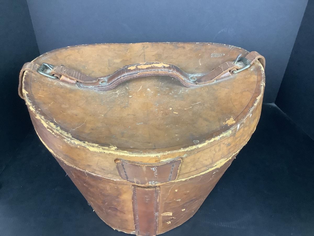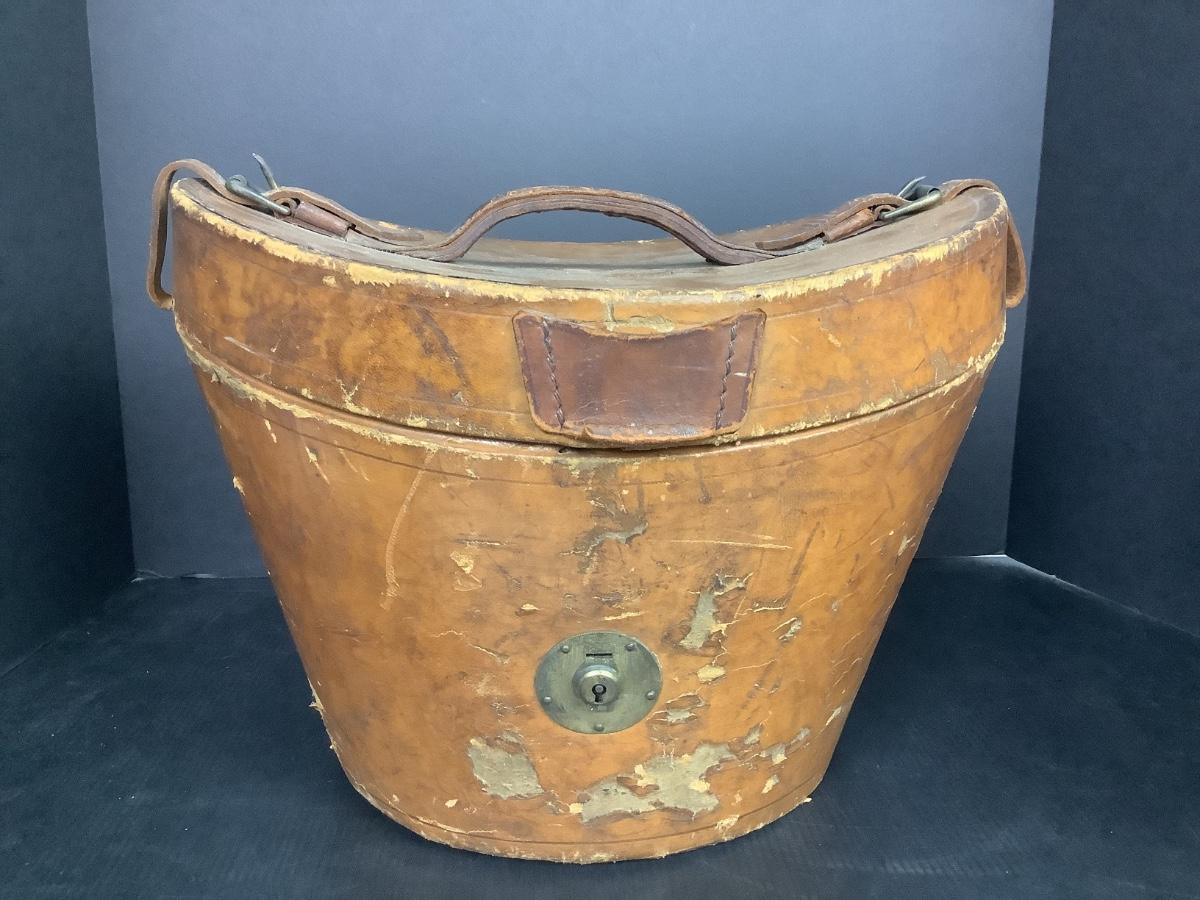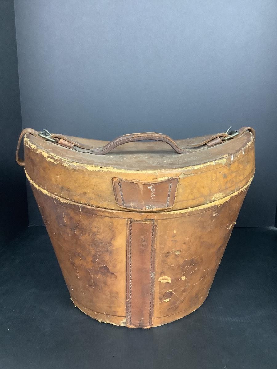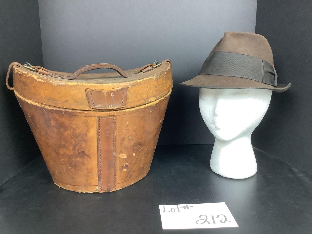 212. Antique Leather English Hat Box &  Vintage Felt Hat