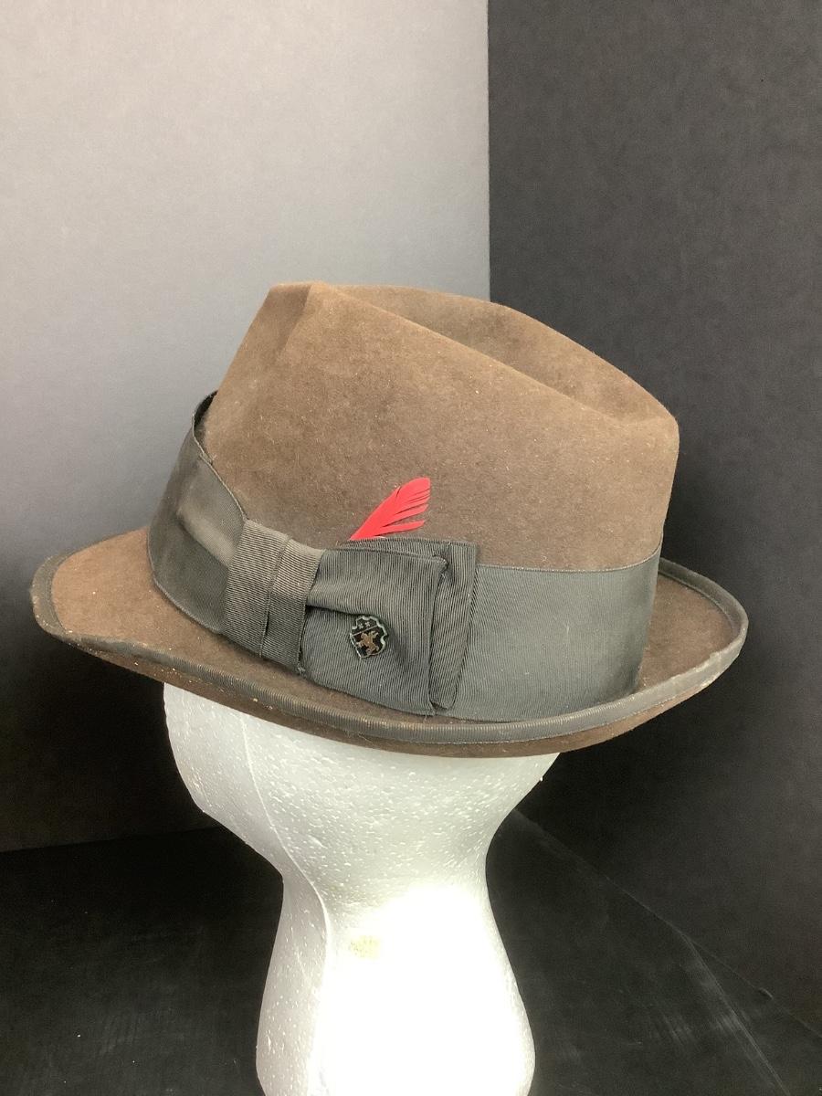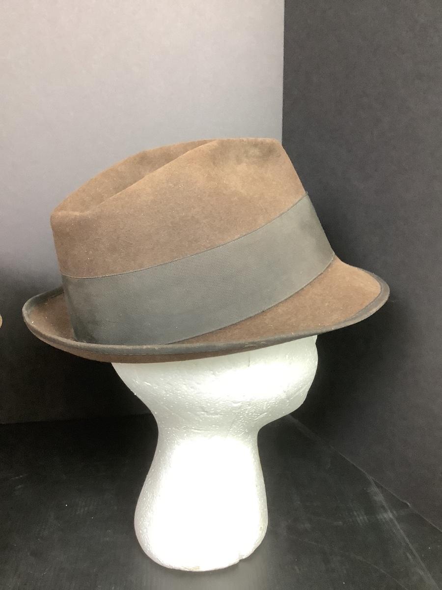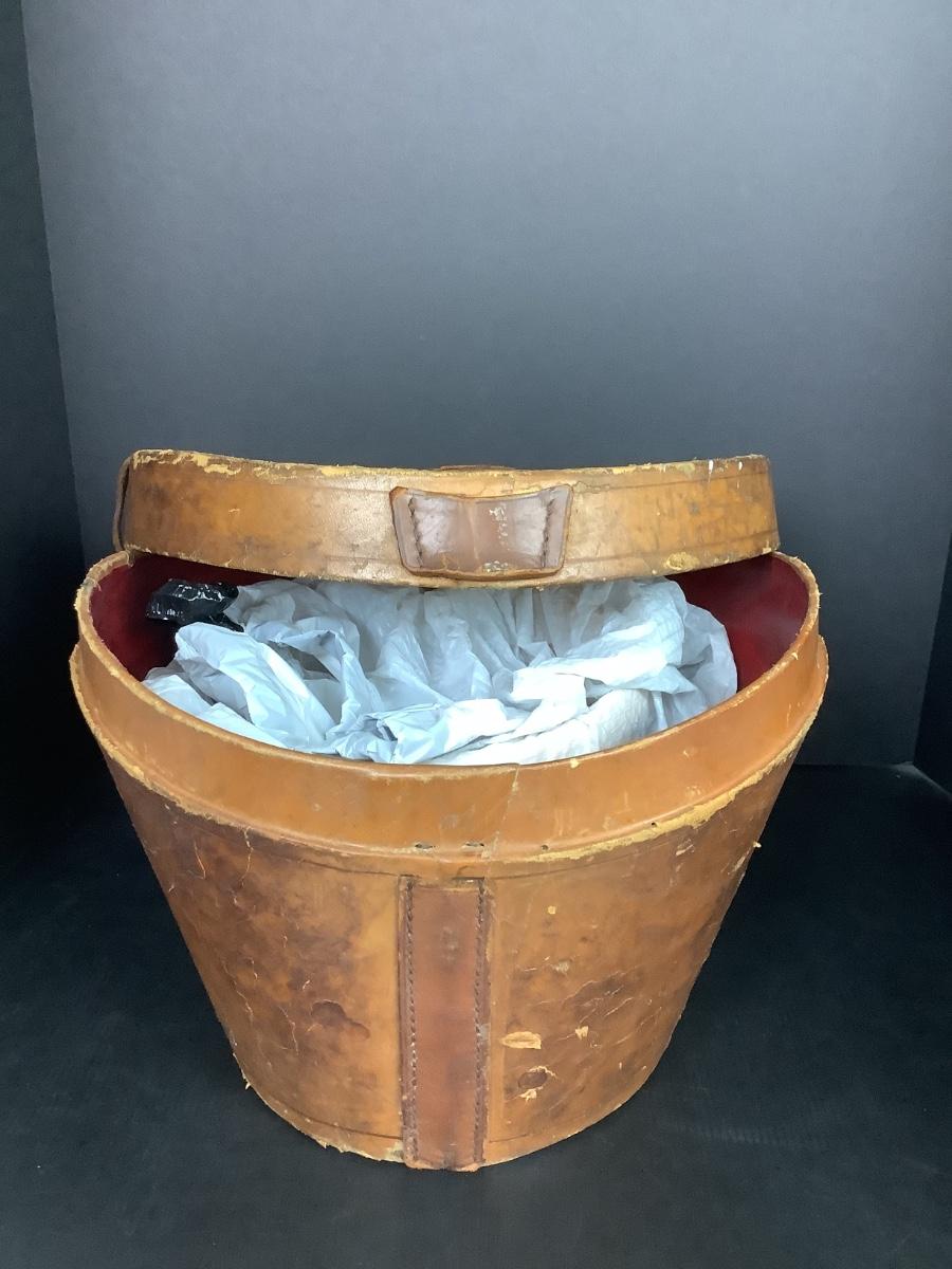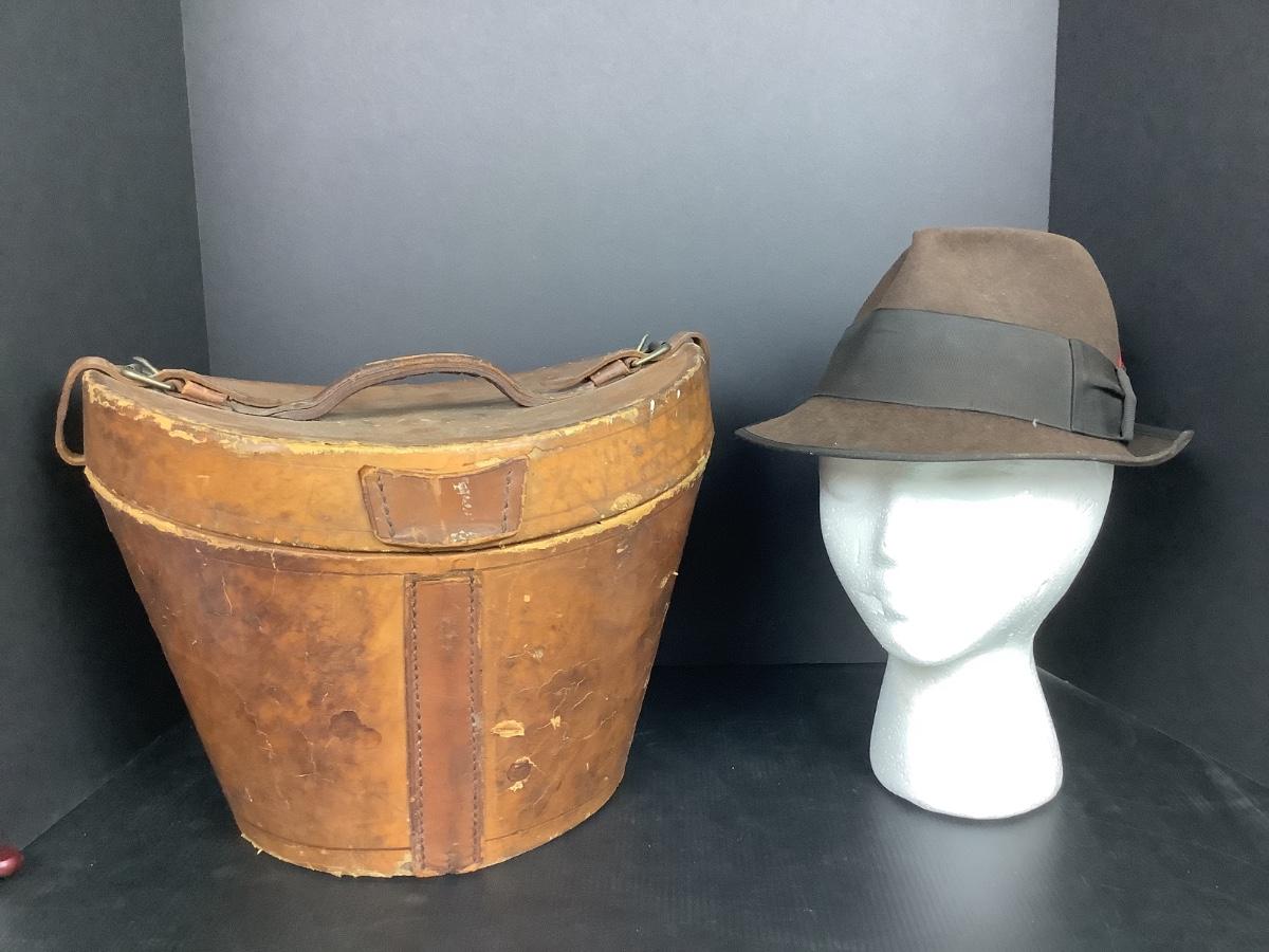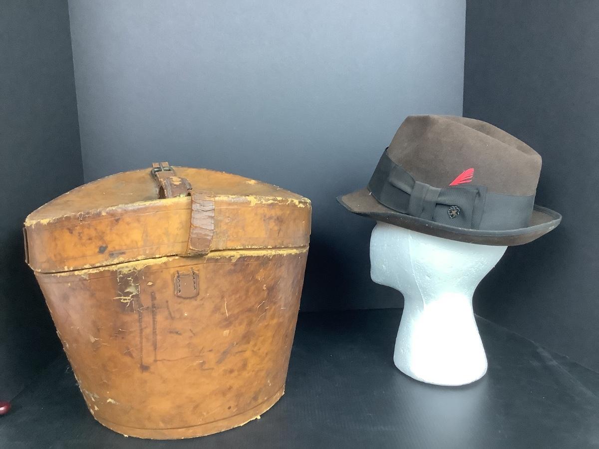 212. Antique Leather English Hat Box & Vintage Felt Hat