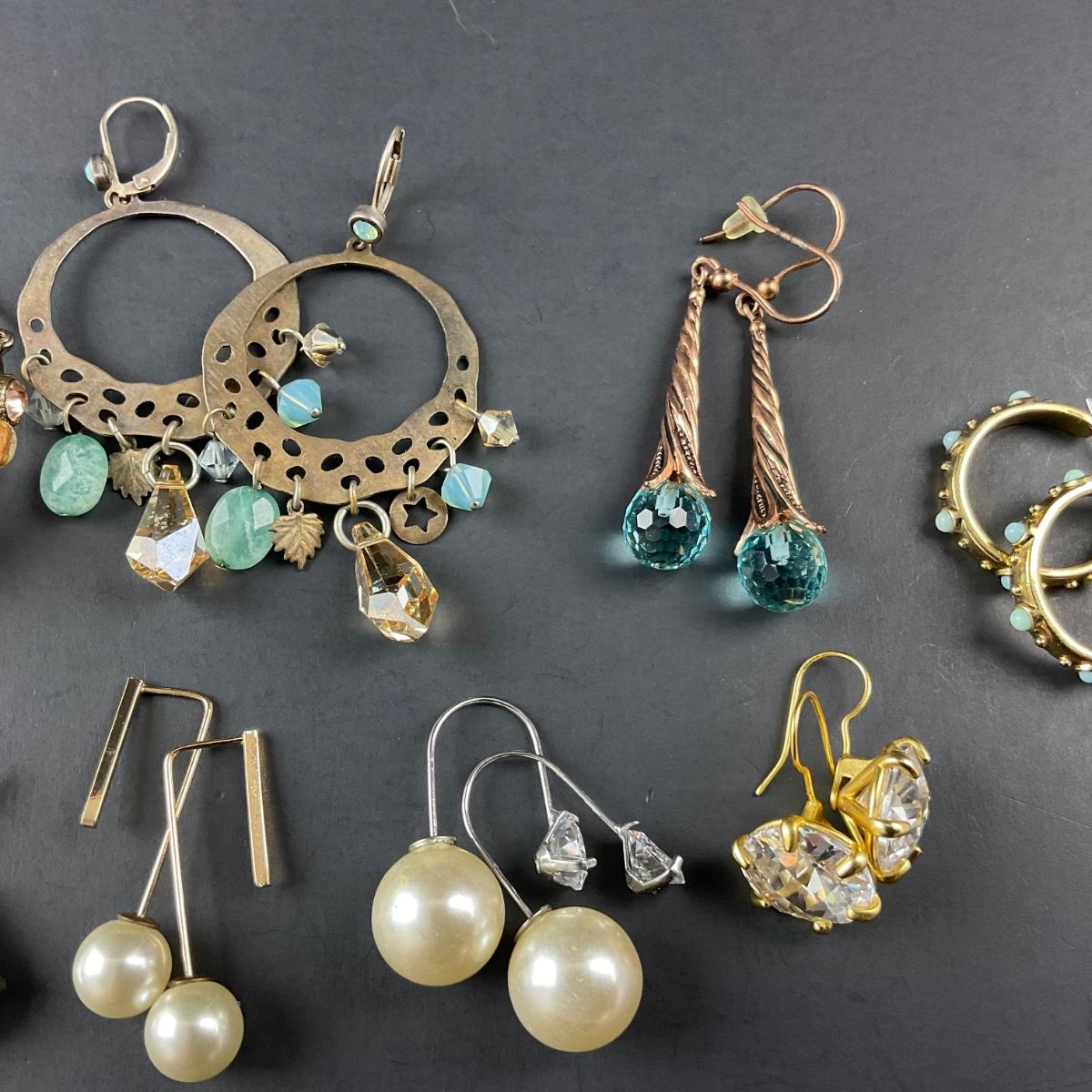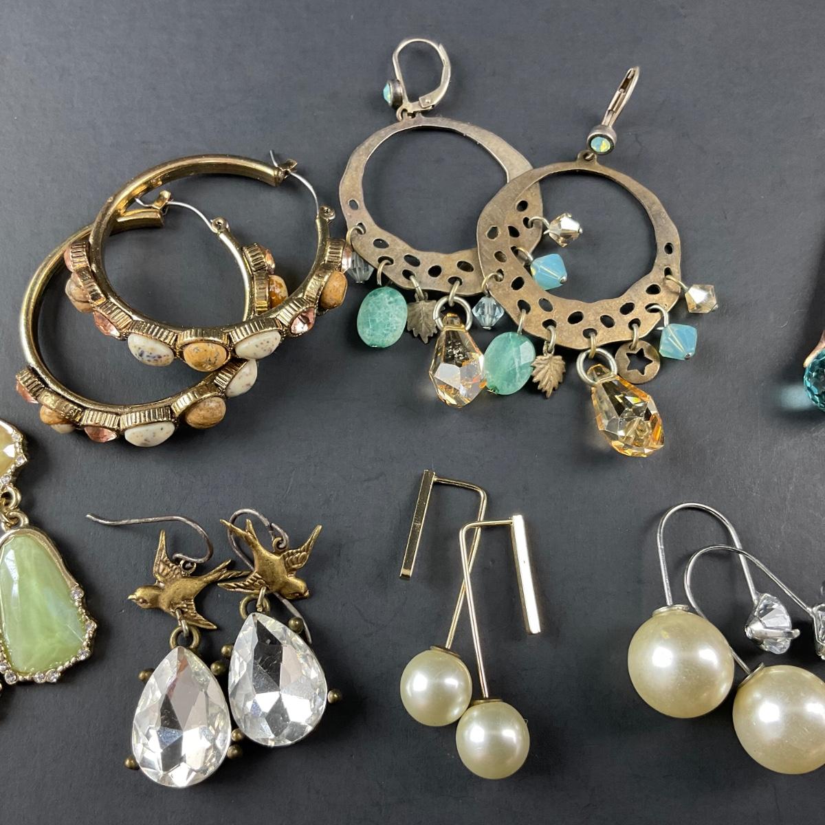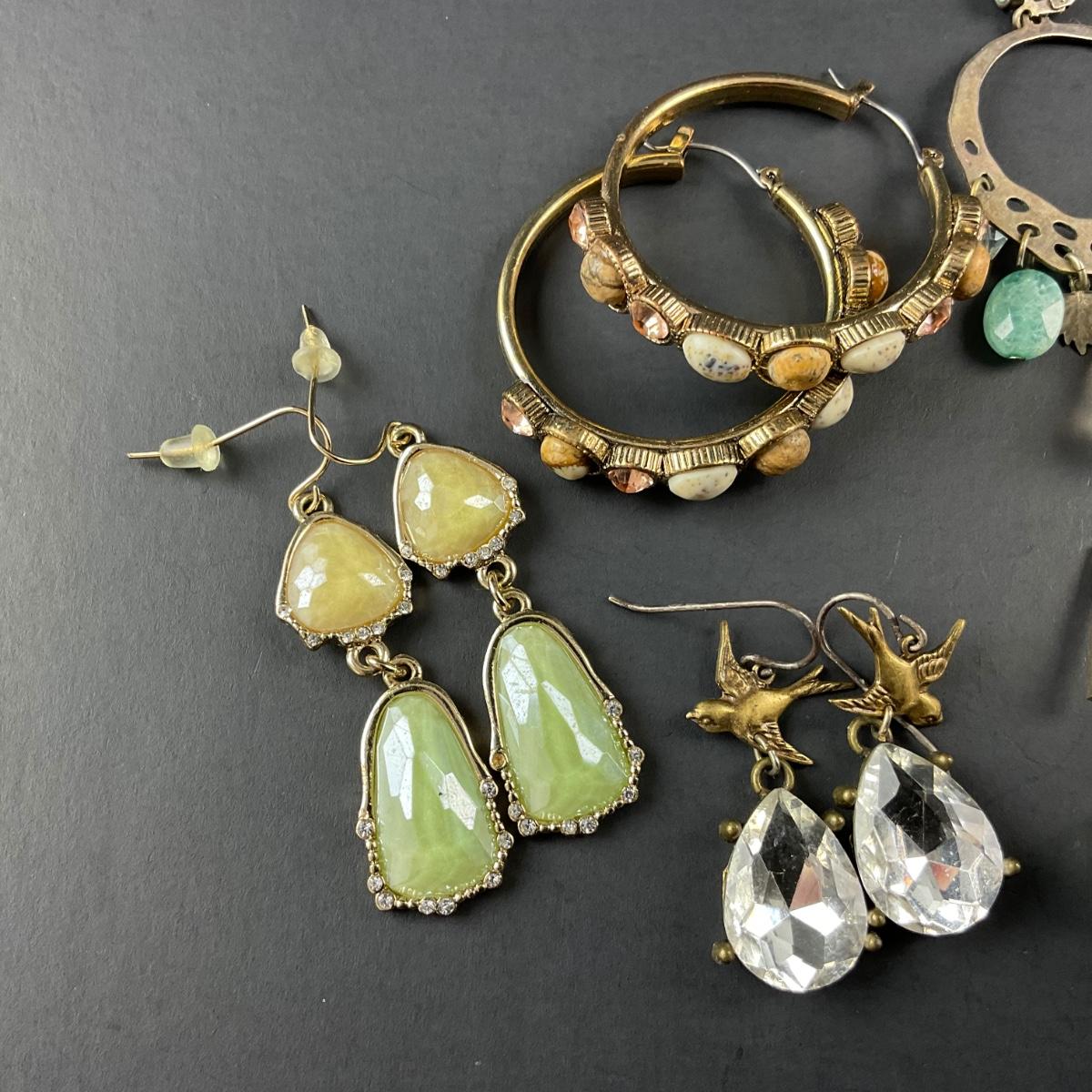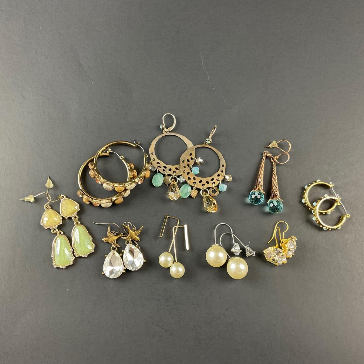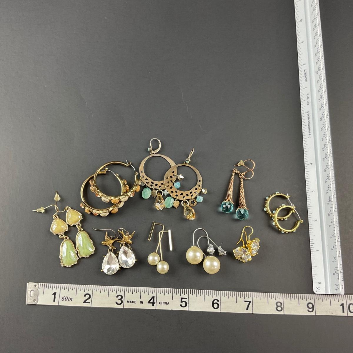 Nine pairs of miscellaneous gold and colored earrings. This piece has no damage, and appears to be in great shape with no visable chips, cracks, or broken pieces. Please see photos for details and condition. Any condition statement is given as a courtesy to a client, is an opinion, and should not be treated as a statement of fact. Reference to condition written, oral or within a condition report shall not be regarded as a full account of condition and may not include all defects, alterations, or restorations. Absence of a condition report does not imply a lot is flawless or lacking imperfections or damage. Katherine’s Auction & Appraisal Service shall have no responsibility for any error or omission. Returns shall not be accepted on the basis of condition. ::: Shipping is available on this lot. If you require shipping you must let us know at the close of the auction. We will coordinate with you after the item has been won. Shipping fees will include insurance up to or exceeding the value of all items being mailed. If you have any questions regarding this lot please contact the auctioneer either via this website, by direct email or by phone. PICK UP TIMES and other important information can be found in the TERMS and DESCRIPTION of the auction. Please take a look for pertinent information. Thanks!