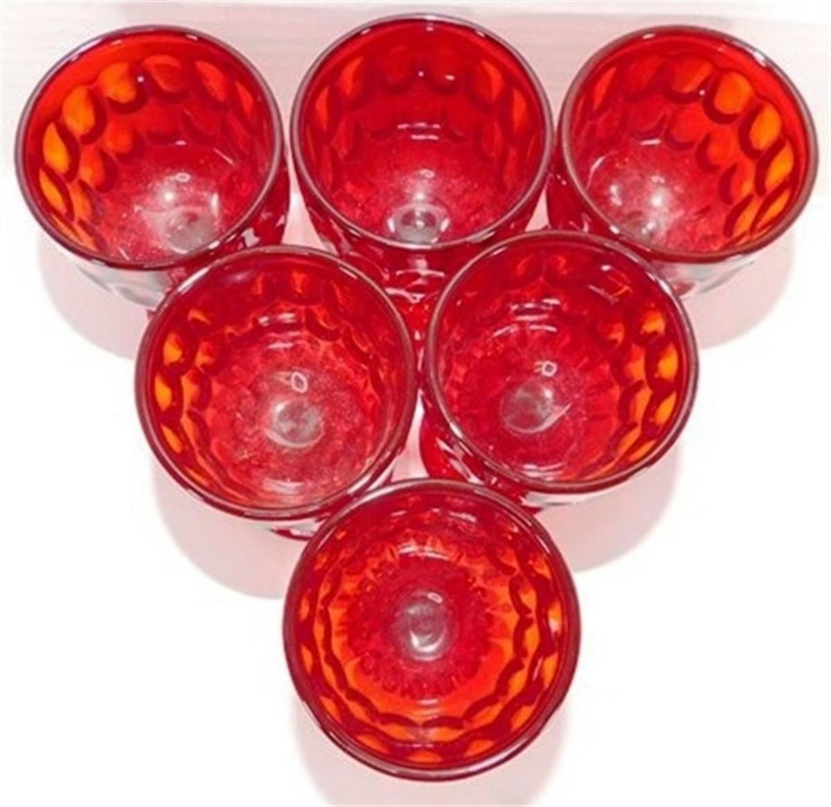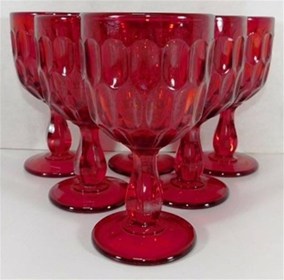 212 Lot of 6 Fenton Red Thumbprint Goblets 5 inch