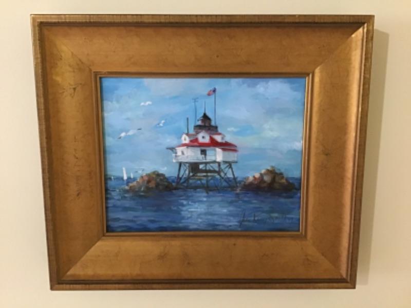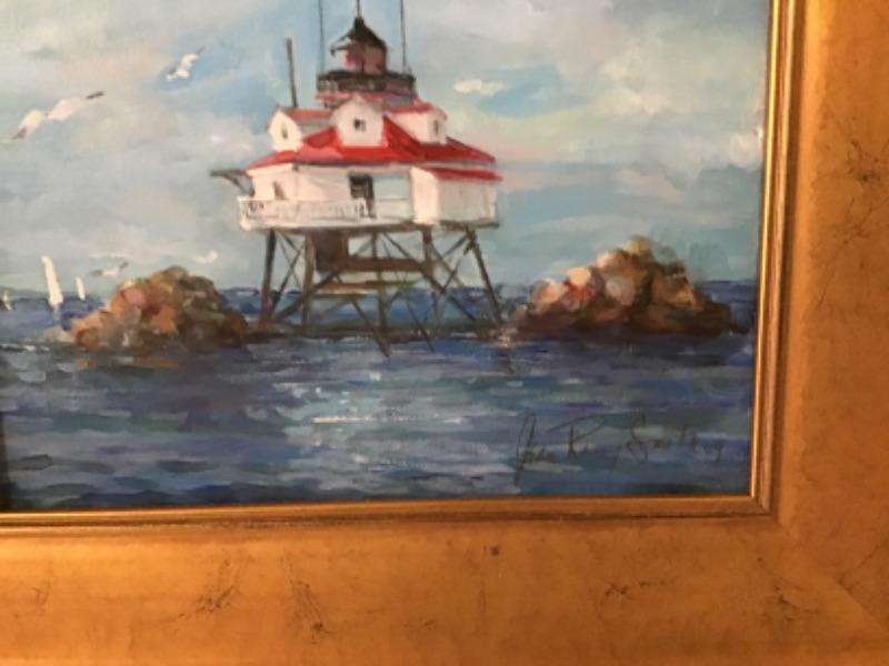 Original Oil Painting on canvas “ Lighthouse “ by Jean Ranney Smith “˜09, in gold framing
