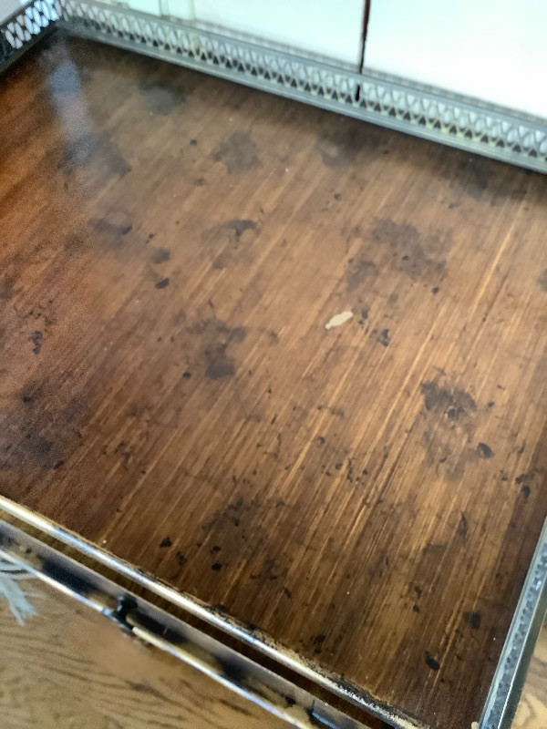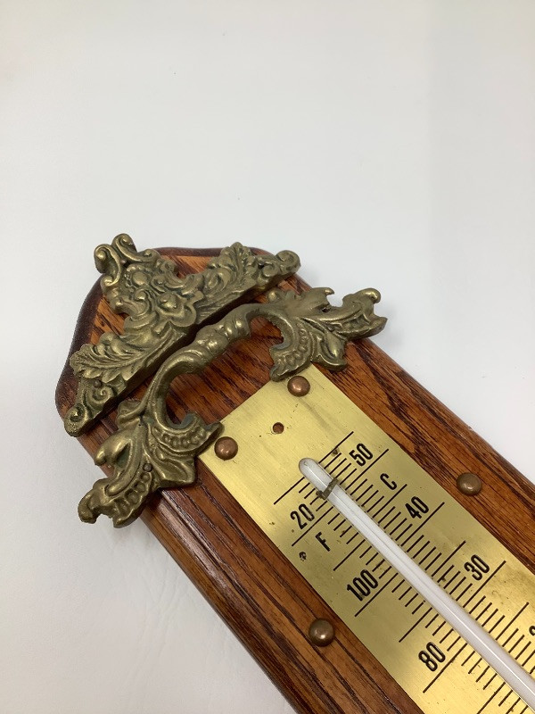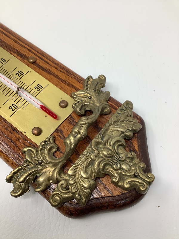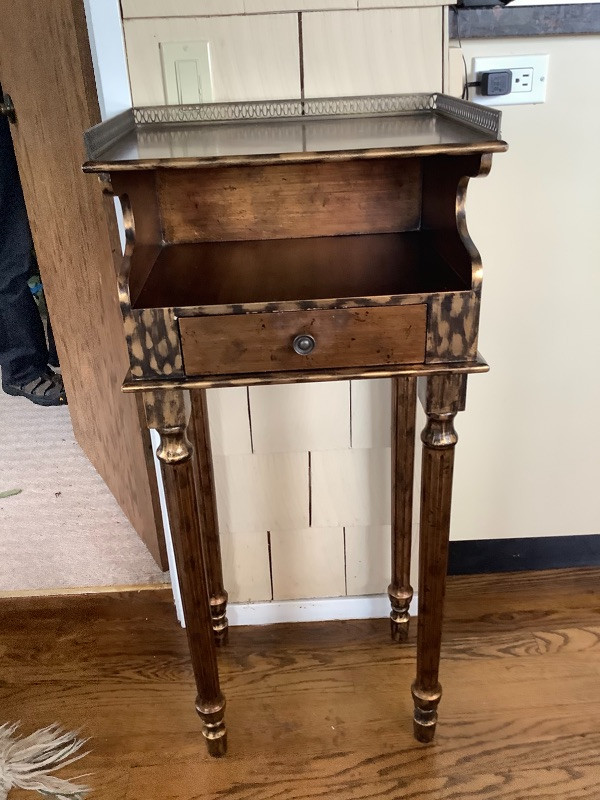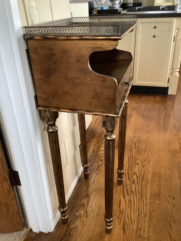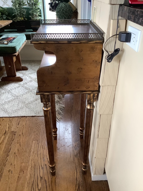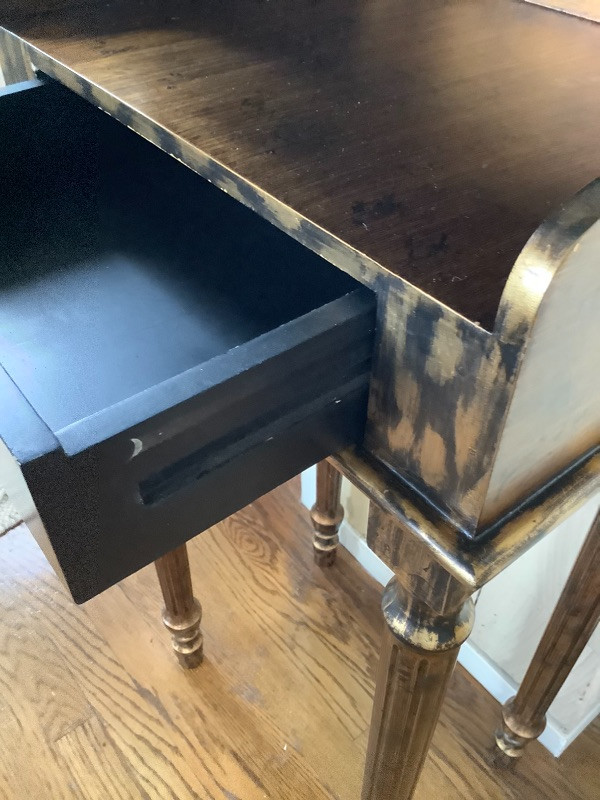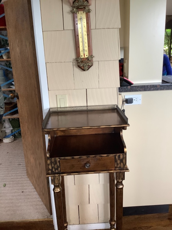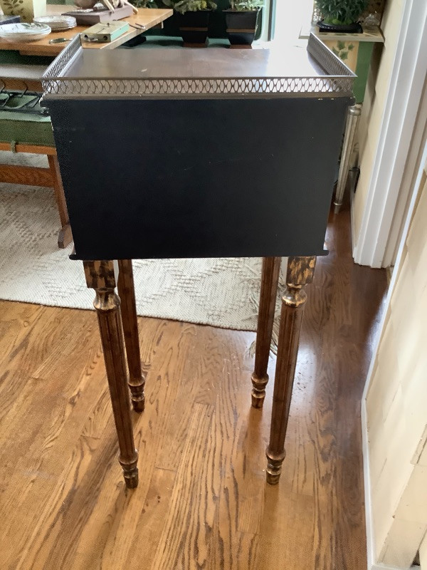 Entry Table with Drawer and Vintage Thermometer Note top of table has flaw in paint