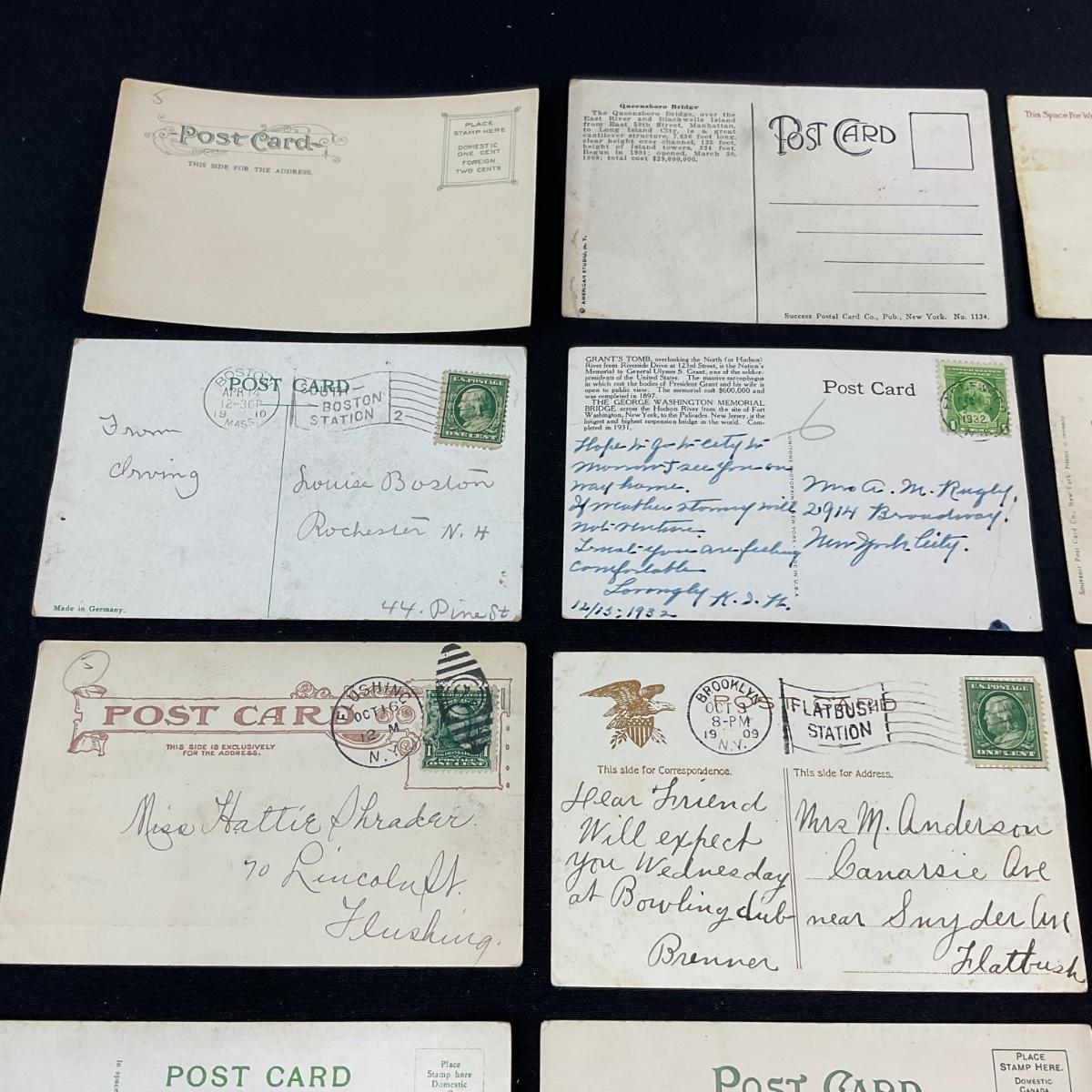 Twelve assorted bridges and boats postcards. Please see photos for details and condition. Any condition statement is given as a courtesy to a client, is an opinion, and should not be treated as a statement of fact. Reference to condition written, oral or within a condition report shall not be regarded as a full account of condition and may not include all defects, alterations, or restorations. Absence of a condition report does not imply a lot is flawless or lacking imperfections or damage. Katherine’s Auction & Appraisal Service shall have no responsibility for any error or omission. Returns shall not be accepted on the basis of condition. ::: Shipping is available on this lot. If you require shipping you must let us know at the close of the auction. We will coordinate with you after the item has been won. Shipping fees will include insurance up to or exceeding the value of all items being mailed. If you have any questions regarding this lot please contact the auctioneer either via this website, by direct email or by phone. PICK UP TIMES and other important information can be found in the TERMS and DESCRIPTION of the auction. Please take a look for pertinent information. Thanks!