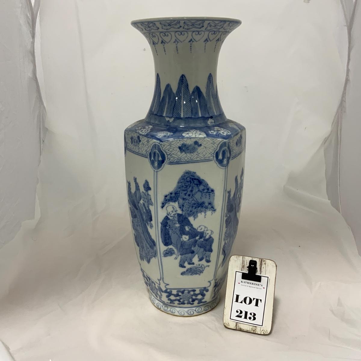 From the Estate of Peter and Alice Radovanovich: Tall Asian-Inspired Vase. Beautiful Design and functional. Could be a great accent or conversation piece in a room. Vase measures 18.5” tall and approximately 8” wide. Please see photos for details and condition. ::: Shipping is NOT available on this lot. If you have any questions regarding this lot please contact the auctioneer either via this website, by direct email or by phone. PICK UP TIMES and other important information can be found in the TERMS and DESCRIPTION of the auction. Please take a look for pertinent information. Thanks!