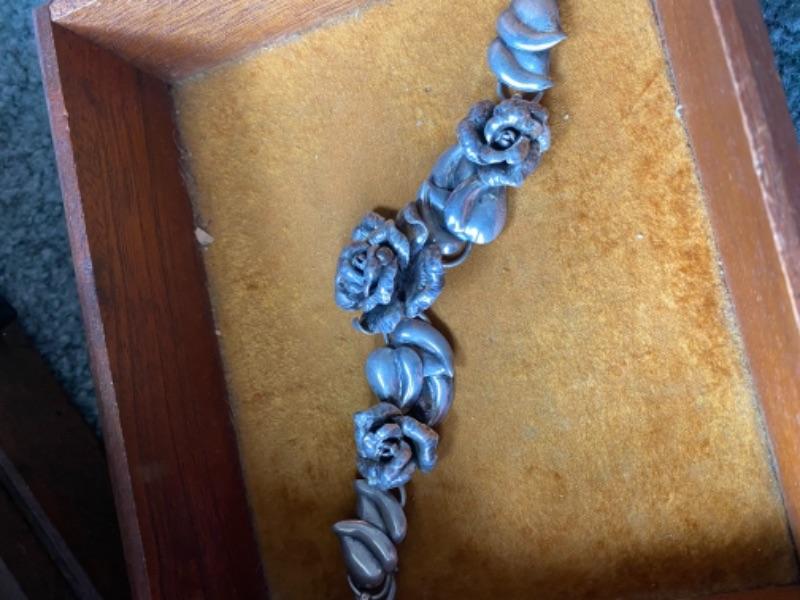 213 Vintage Napier Silver Rose Bracelet with Glass Ball Necklace