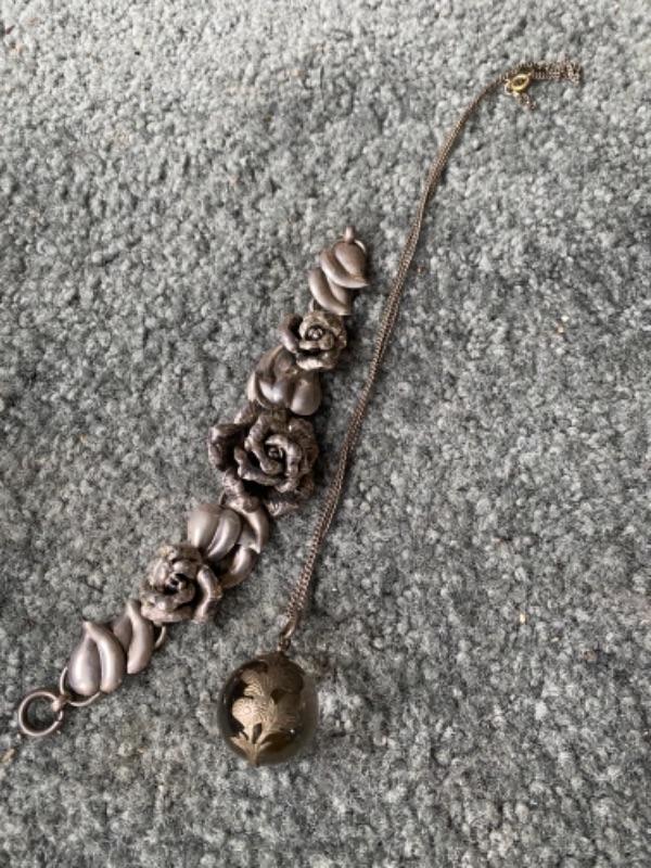 Vintage Napier Silver Rose Bracelet with Glass Ball Necklace