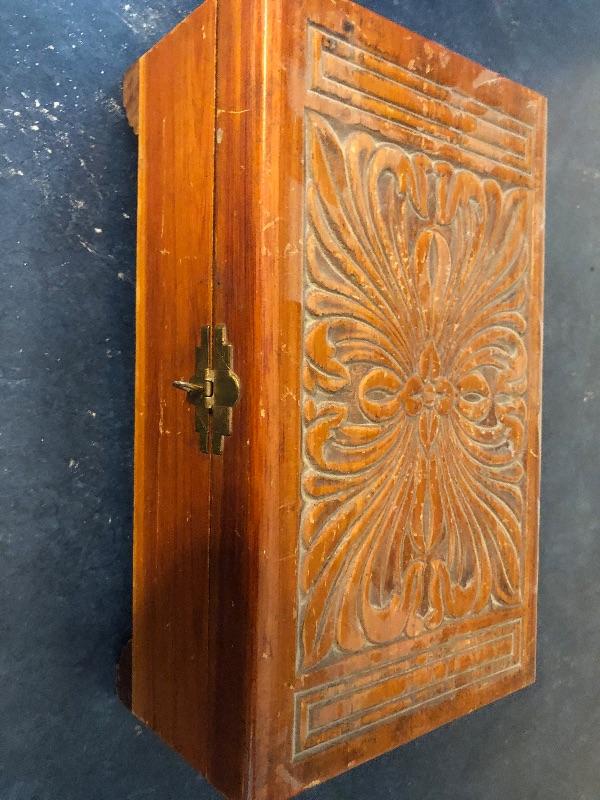 Cool design, measures 10 x 6 x 4, vintage used condition missing one of the feet on the bottom. Great condition. This is an ONSITE Auction all items will need to be picked up on location. Please see auction description for pick up procedures.