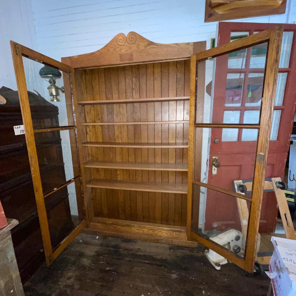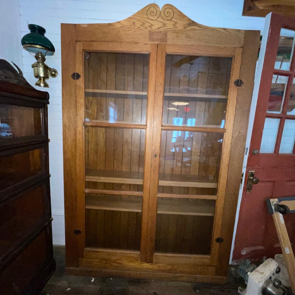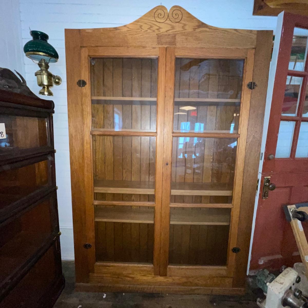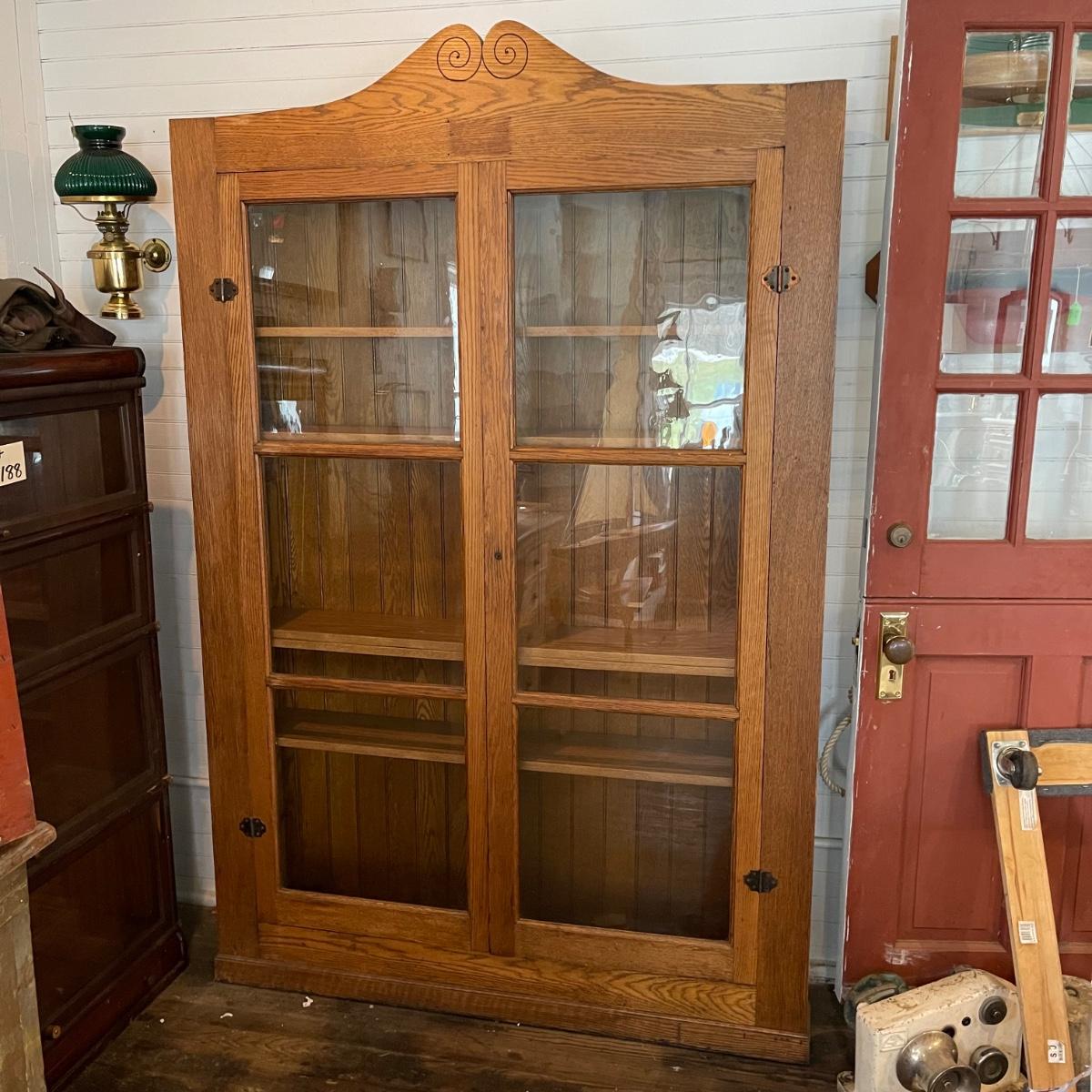 Antique Early 19th Century Oak Bookcase. Bookcase is in fantastic shape. Appears to have all original glass in the doors. All hardware appears to be original. Five adjustable shelves @ 1.5” increments.