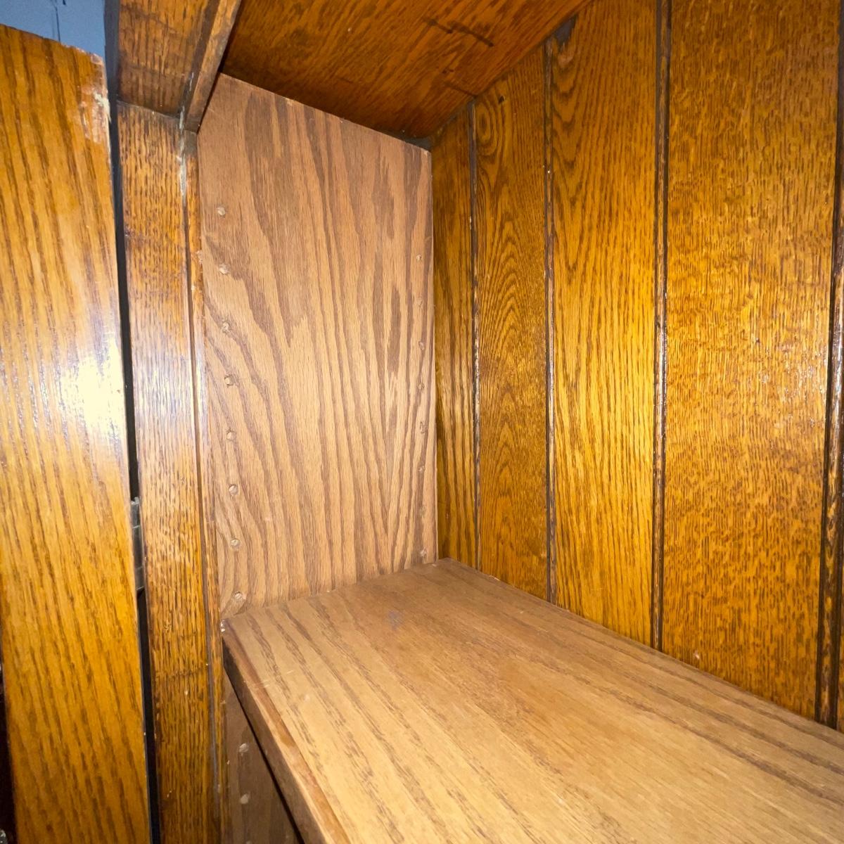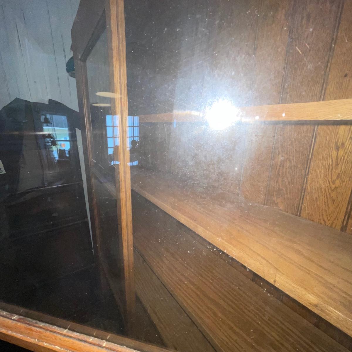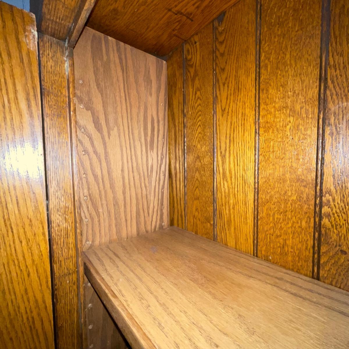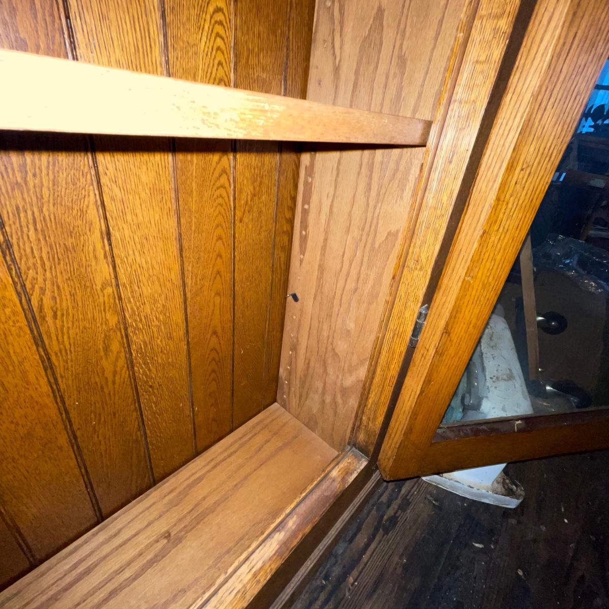 Antique Early 19th Century Oak Bookcase. Bookcase is in fantastic shape. Appears to have all original glass in the doors. All hardware appears to be original. Five adjustable shelves @ 1.5” increments.