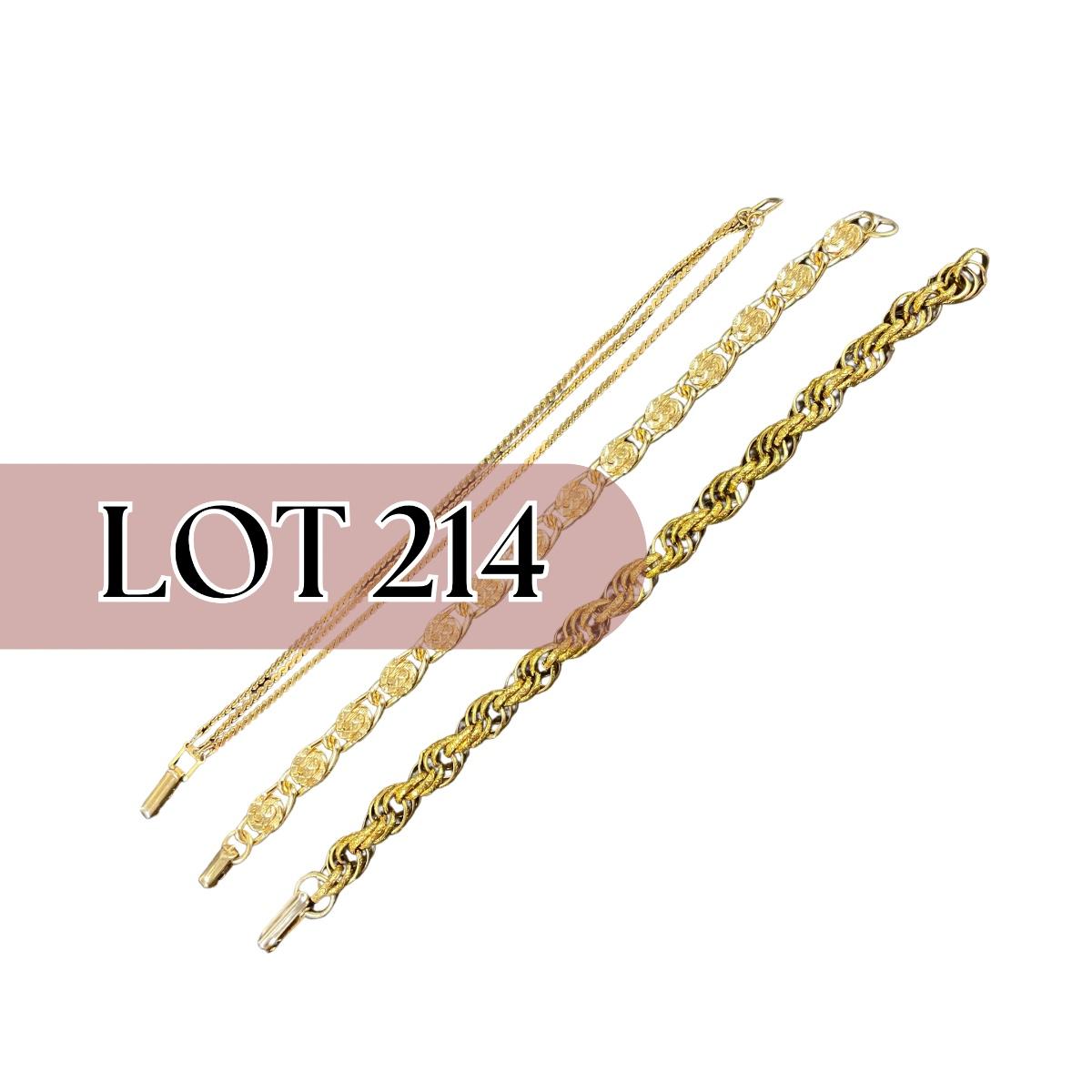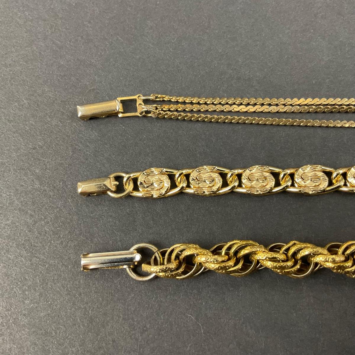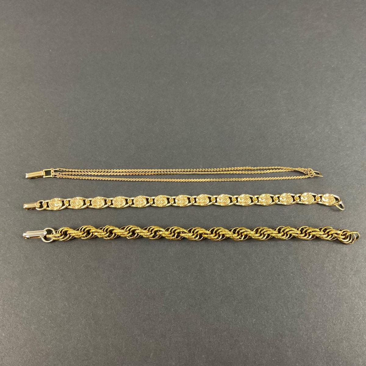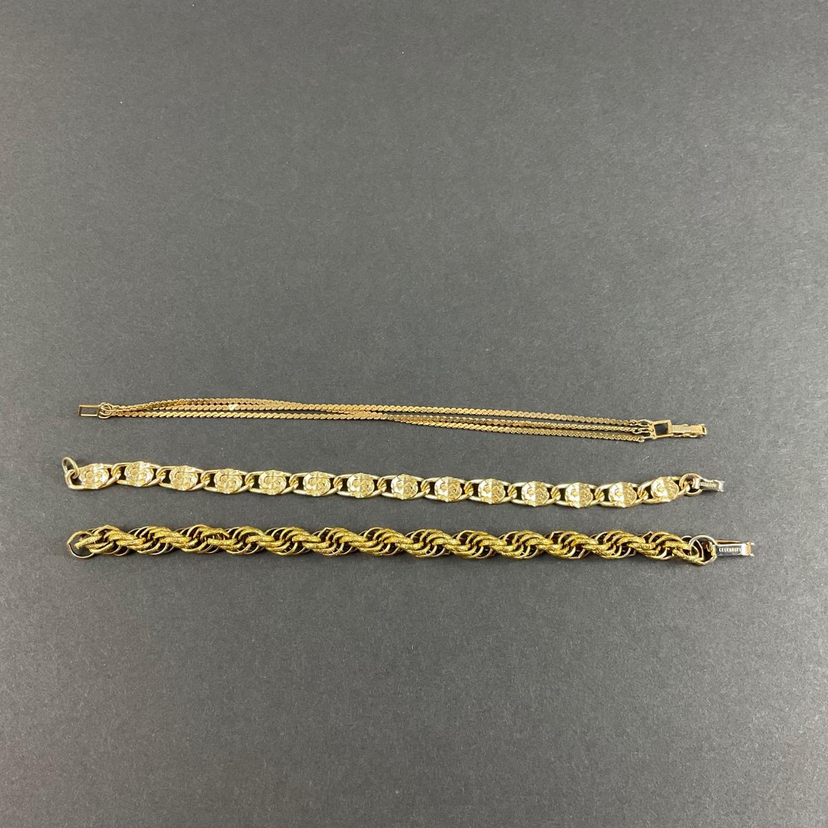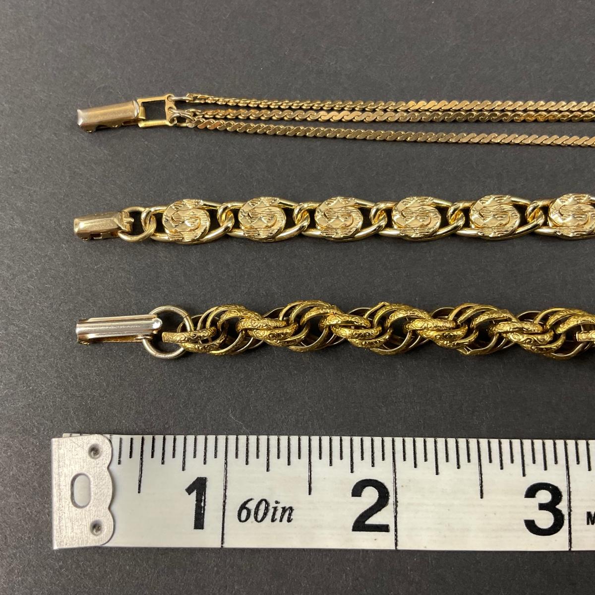 Three gold tone bracelets all marked. One Celebrity brand, and two Sarah Coventry bracelet. Please see photos for details and condition. Any condition statement is given as a courtesy to a client, is an opinion, and should not be treated as a statement of fact. Reference to condition written, oral or within a condition report shall not be regarded as a full account of condition and may not include all defects, alterations, or restorations. Absence of a condition report does not imply a lot is flawless or lacking imperfections or damage. Katherine’s Auction & Appraisal Service shall have no responsibility for any error or omission. Returns shall not be accepted on the basis of condition. ::: Shipping is available on this lot. If you require shipping you must let us know at the close of the auction. We will coordinate with you after the item has been won. Shipping fees will include insurance up to or exceeding the value of all items being mailed. If you have any questions regarding this lot please contact the auctioneer either via this website, by direct email or by phone. PICK UP TIMES and other important information can be found in the TERMS and DESCRIPTION of the auction. Please take a look for pertinent information. Thanks!