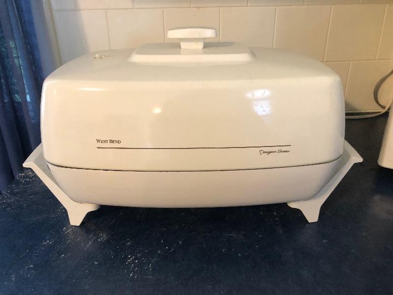 Westbend electric skillet with cord and pan vintage used condition. Not tested. Great condition. This is an ONSITE Auction all items will need to be picked up on location. Please see auction description for pick up procedures.