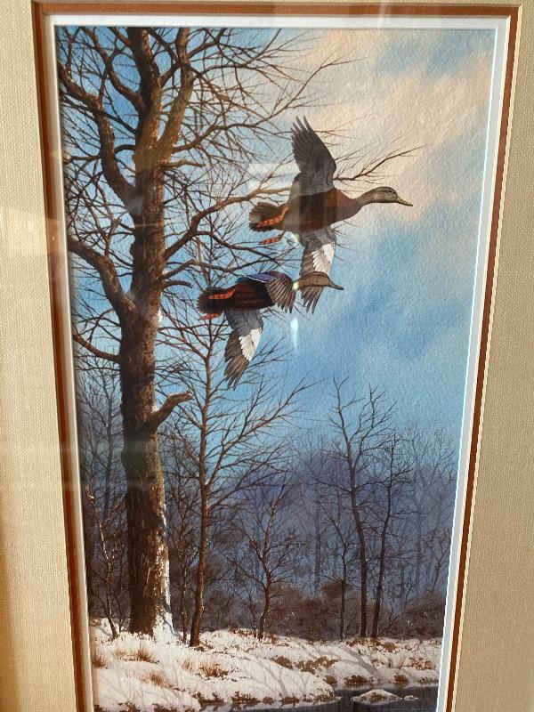 Original Waterfowl Watercolor by William Redd Taylor titled “Mid Winter Blacks” Measures 29.5” x 17.5”