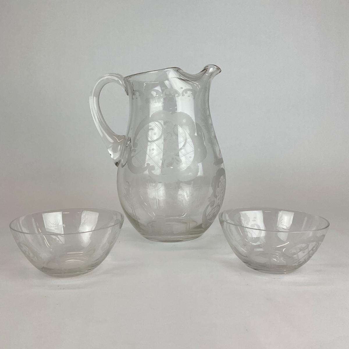 214 Tiffany & Co. Etched Pitcher and Bowls