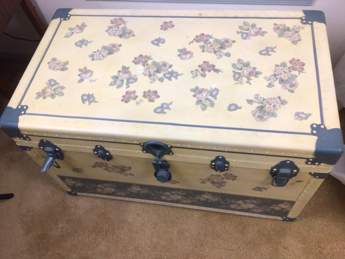 Trunk is fully lined and measures 36” x 20” x 22”.