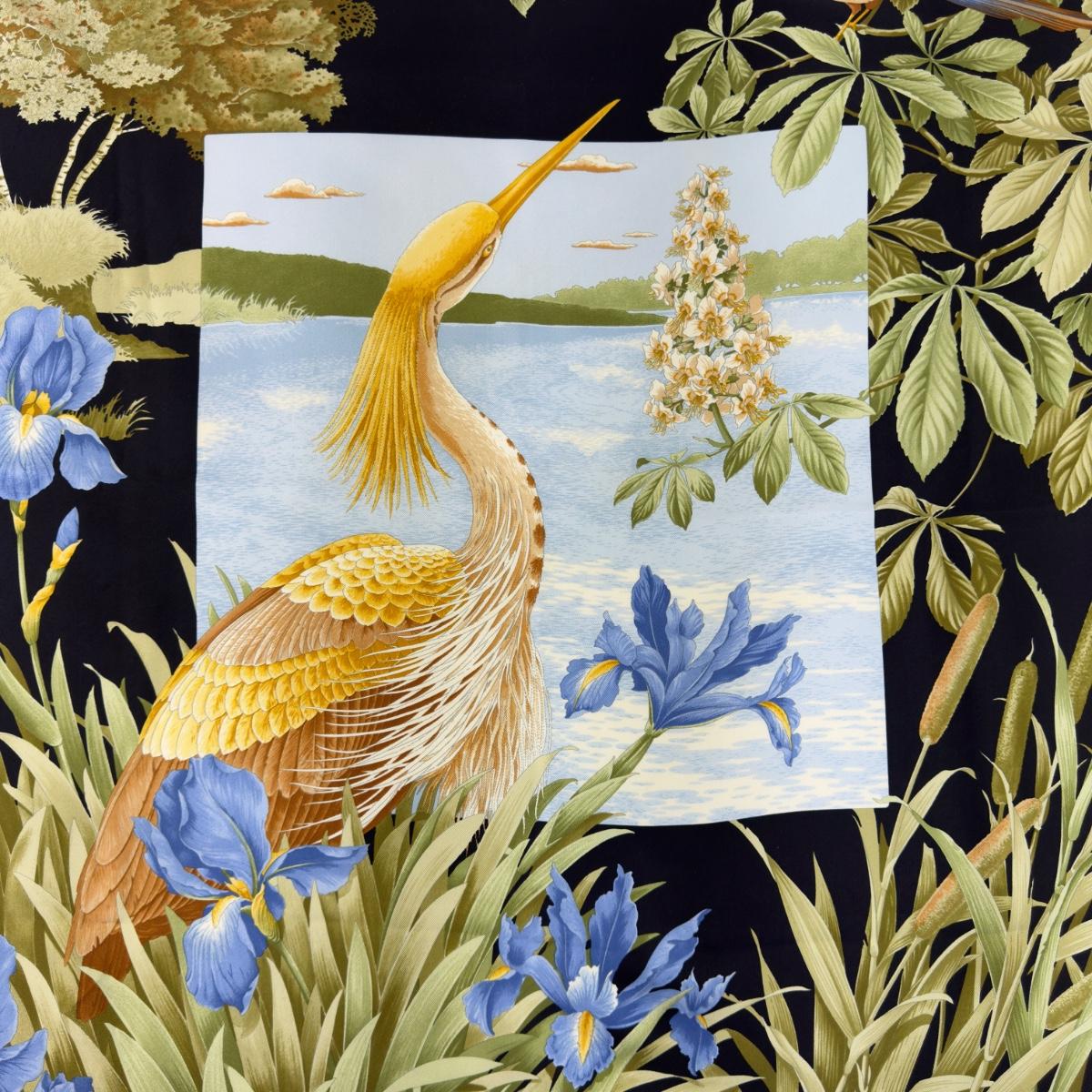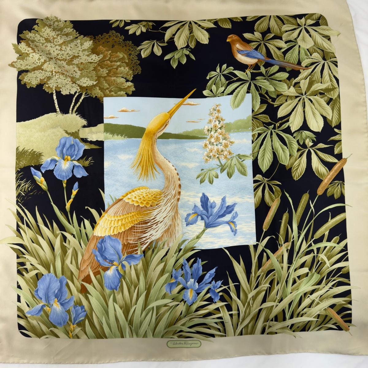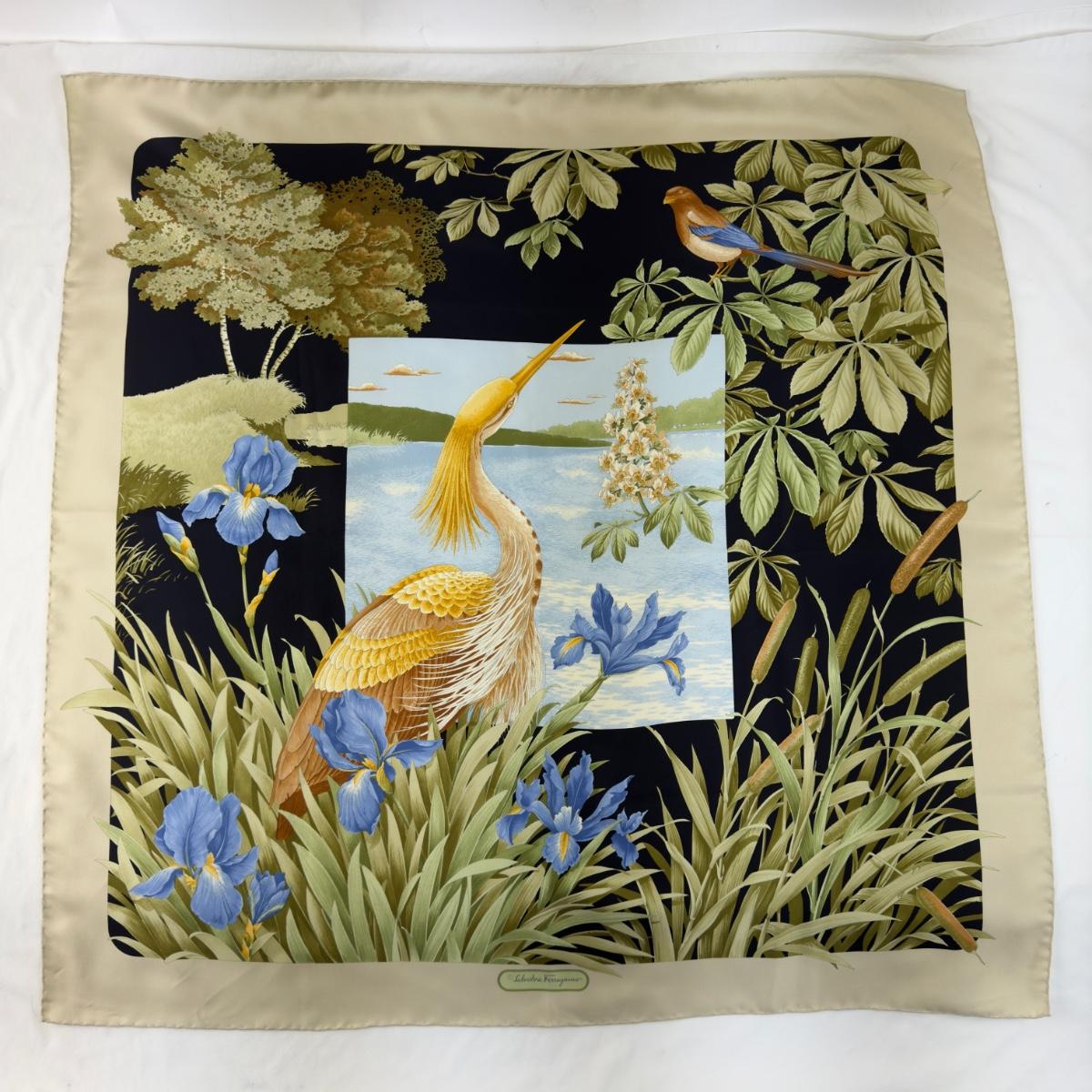 215 Authentic Salvatore Ferragamo Blue Heron Silk Scarf