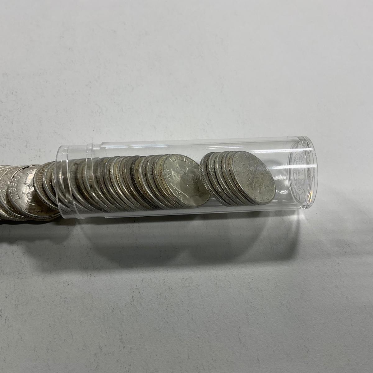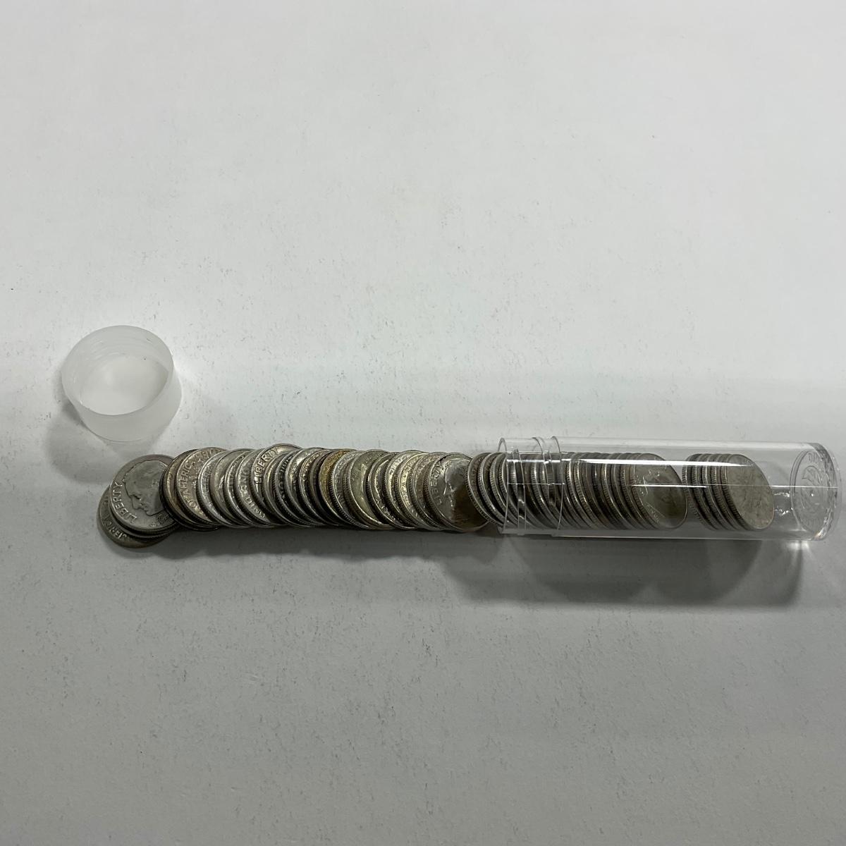 Rosie dime roll of 90% silver. Average wear to Bu mixed dates. Please see photos for details and condition. ::: Shipping is available on this lot. If you require shipping you must let us know at the close of the auction. We will coordinate with you after the item has been won. Shipping fees will include insurance up to or exceeding the value of all items being mailed. If you have any questions regarding this lot please contact the auctioneer either via this website, by direct email or by phone. PICK UP TIMES and other important information can be found in the TERMS and DESCRIPTION of the auction. Please take a look for pertinent information. Thanks!