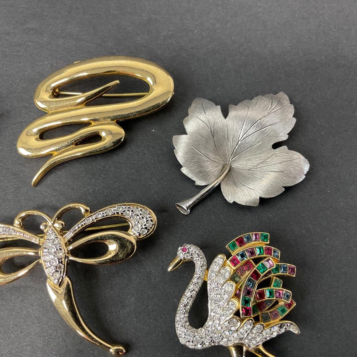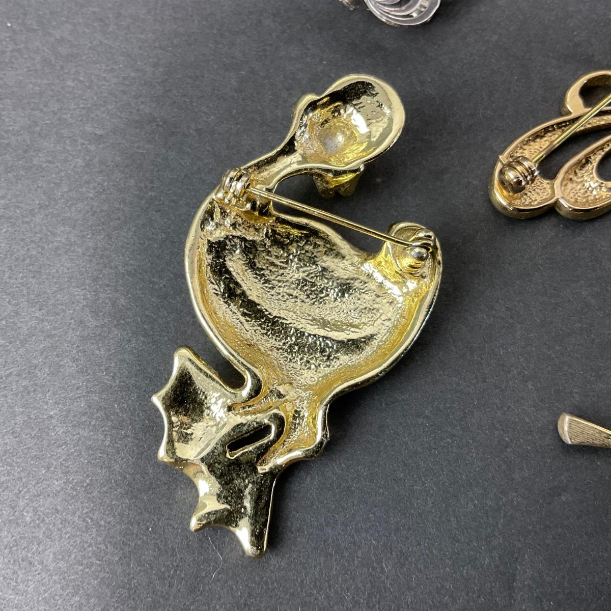Lot of assorted brooches. Please see photos for details and condition. Any condition statement is given as a courtesy to a client, is an opinion, and should not be treated as a statement of fact. Reference to condition written, oral or within a condition report shall not be regarded as a full account of condition and may not include all defects, alterations, or restorations. Absence of a condition report does not imply a lot is flawless or lacking imperfections or damage. Katherine’s Auction & Appraisal Service shall have no responsibility for any error or omission. Returns shall not be accepted on the basis of condition. ::: Shipping is available on this lot. If you require shipping you must let us know at the close of the auction. We will coordinate with you after the item has been won. Shipping fees will include insurance up to or exceeding the value of all items being mailed. If you have any questions regarding this lot please contact the auctioneer either via this website, by direct email or by phone. PICK UP TIMES and other important information can be found in the TERMS and DESCRIPTION of the auction. Please take a look for pertinent information. Thanks!