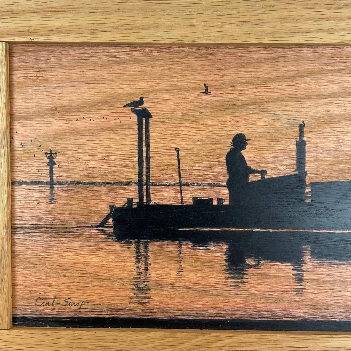 215 Russ Orme Original Color Pencil Ink on Wood “ Crab Soup “