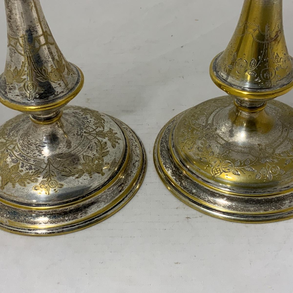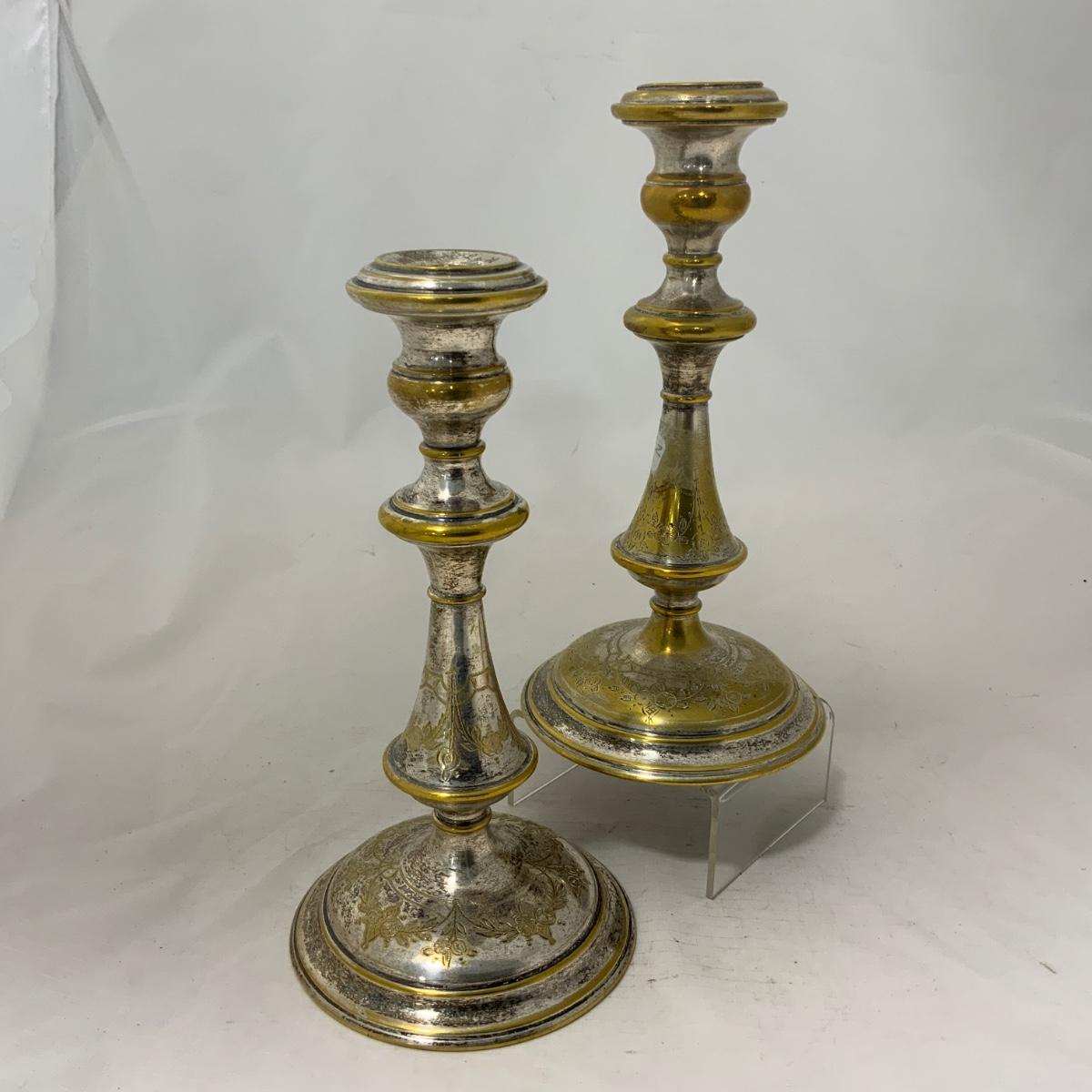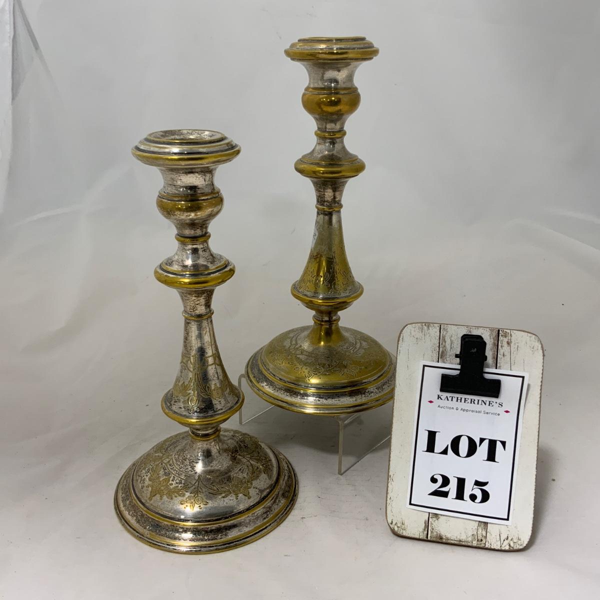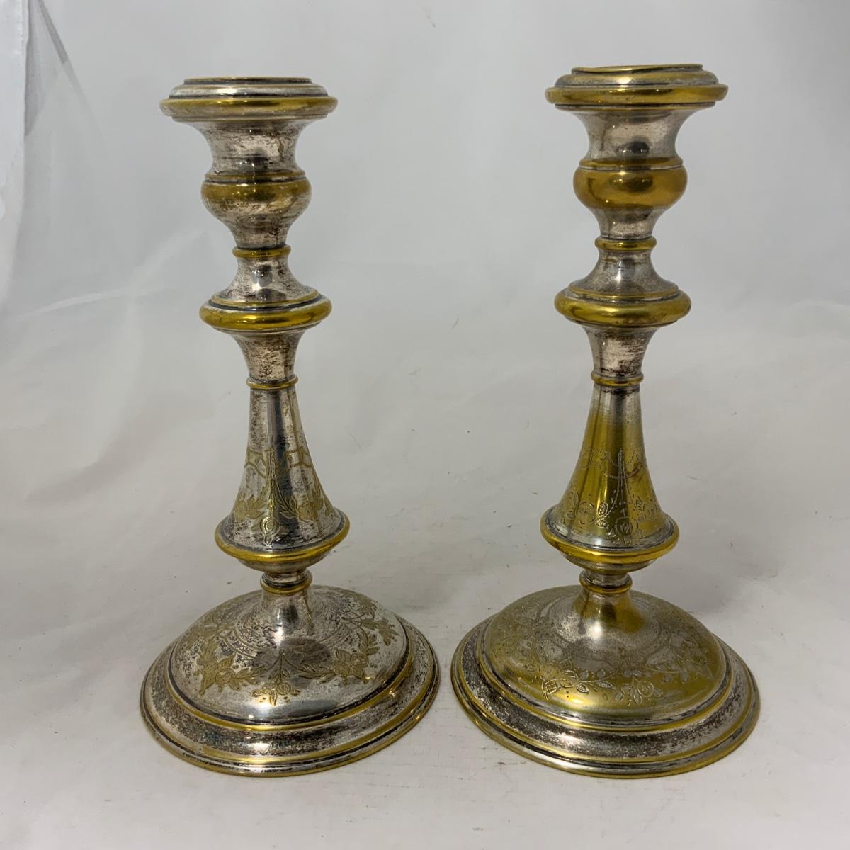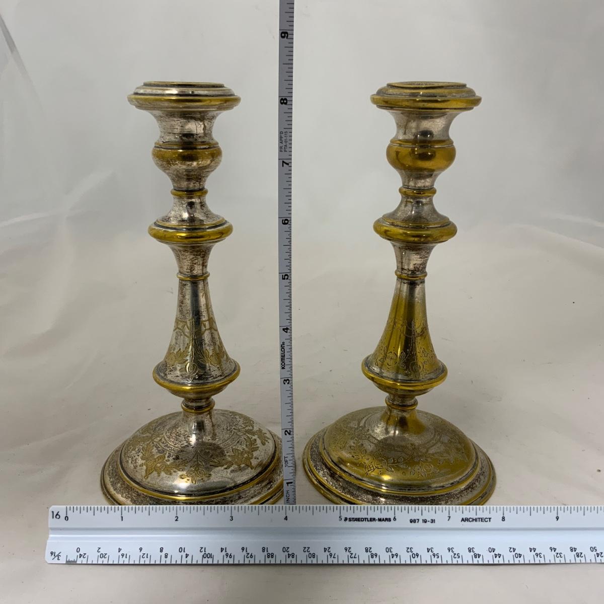 .215. Silver over Brass Candlestick Pair | c. 1870
