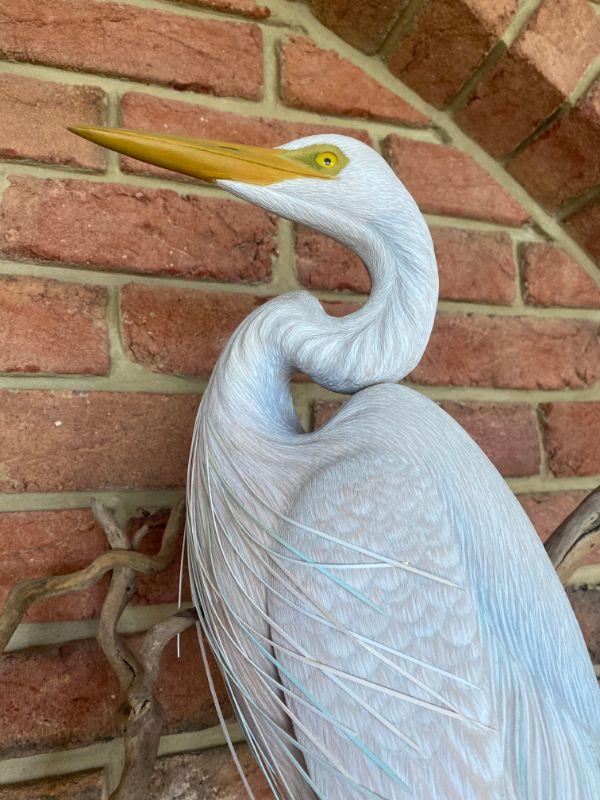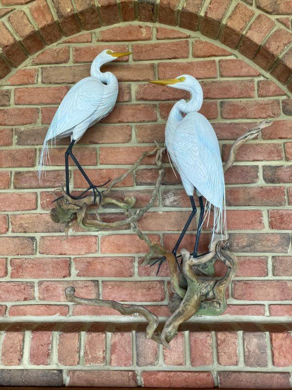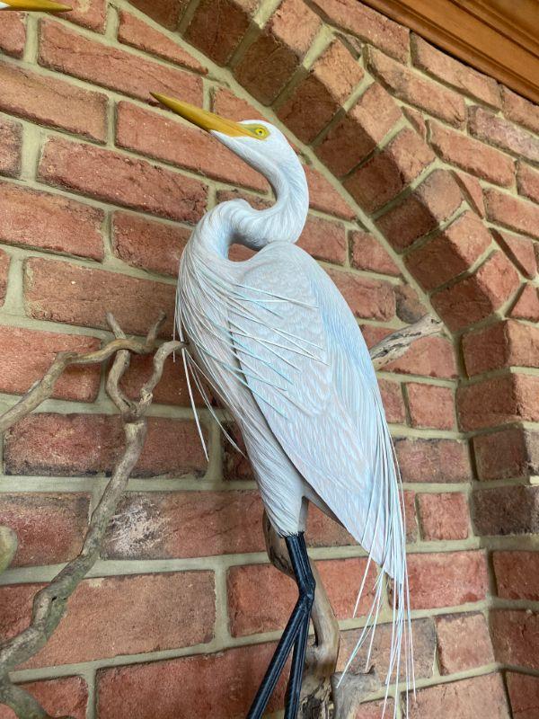 Absolutely Stunning piece of Art! This piece was commissioned by Dan Williams for a Special Place. Carving is made from "Basswood" aka. American Linden Tree. The long plumes are made of basswood as well and have been seperately inserted into the carving. The birds are painted with artist acrylic. Measures approximately 40" tall x 30" wide