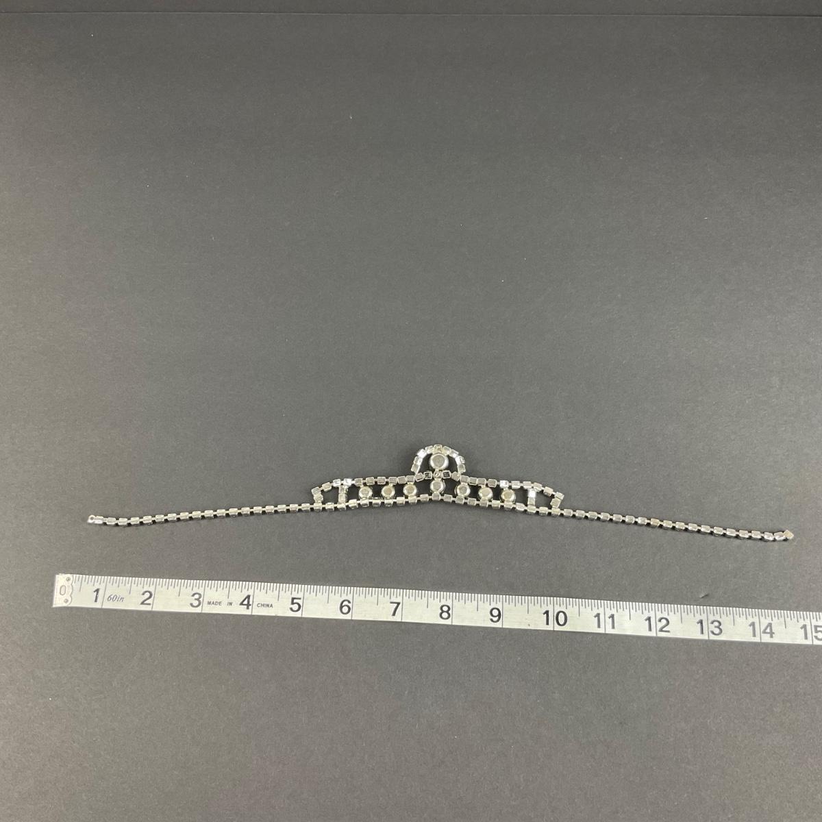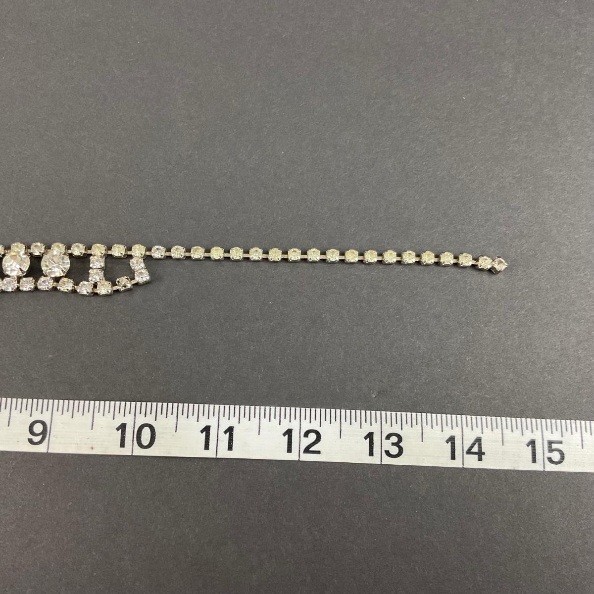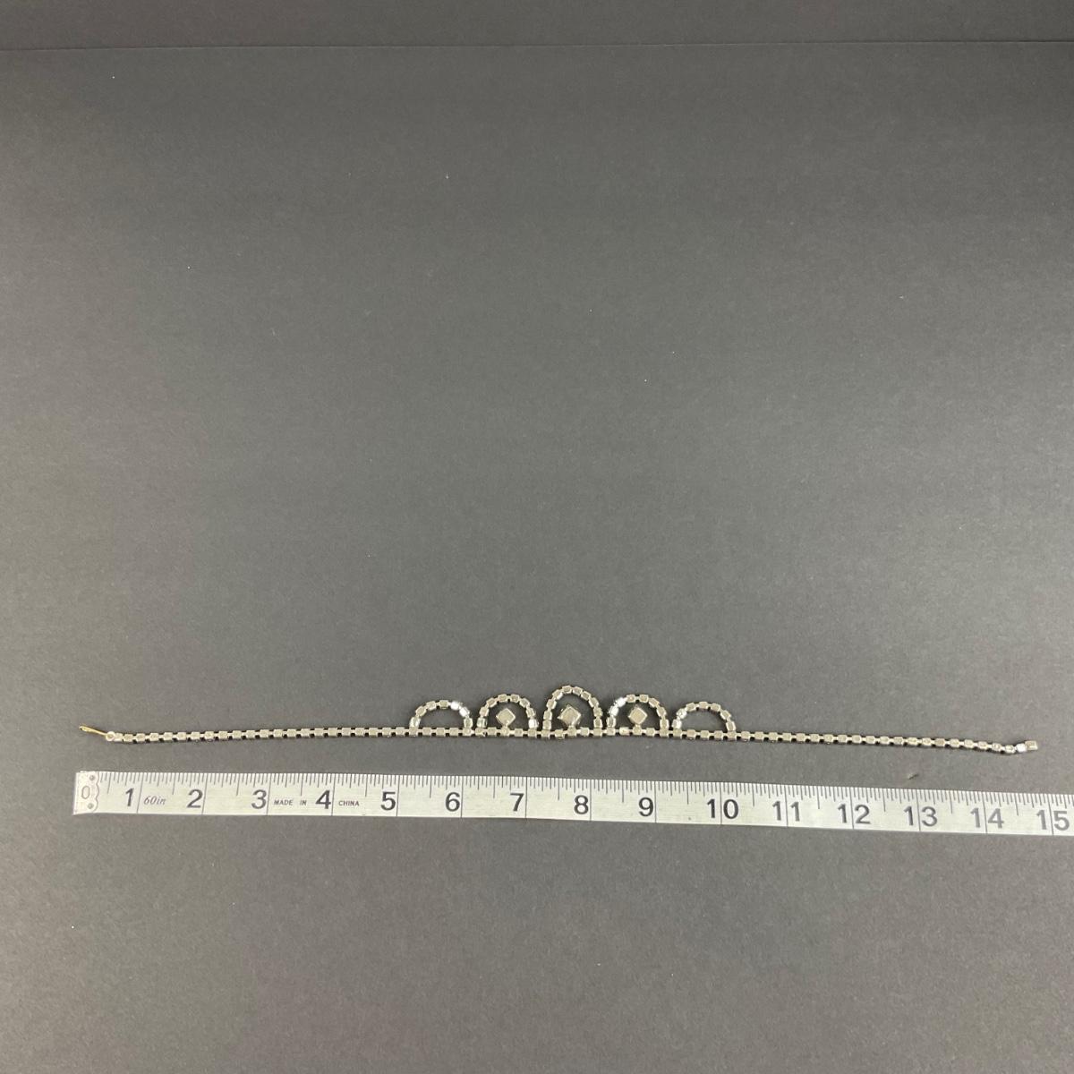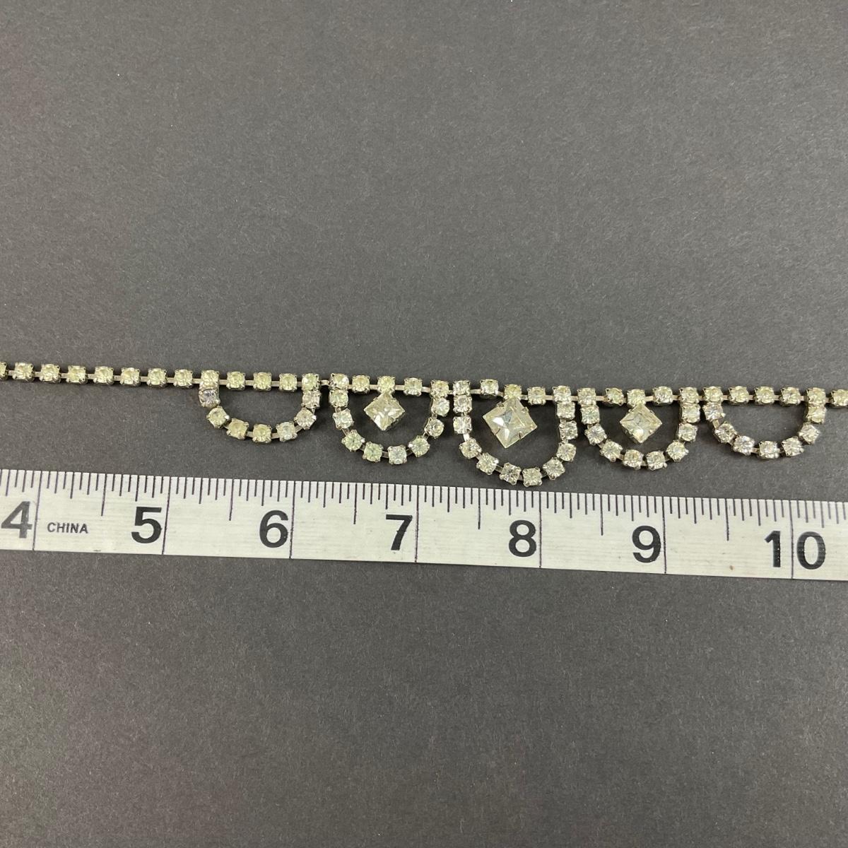 Two unmarked rhinestone necklaces. One is broken and has no clasps. Please see photos for details and condition. Any condition statement is given as a courtesy to a client, is an opinion, and should not be treated as a statement of fact. Reference to condition written, oral or within a condition report shall not be regarded as a full account of condition and may not include all defects, alterations, or restorations. Absence of a condition report does not imply a lot is flawless or lacking imperfections or damage. Katherine’s Auction & Appraisal Service shall have no responsibility for any error or omission. Returns shall not be accepted on the basis of condition. ::: Shipping is available on this lot. If you require shipping you must let us know at the close of the auction. We will coordinate with you after the item has been won. Shipping fees will include insurance up to or exceeding the value of all items being mailed. If you have any questions regarding this lot please contact the auctioneer either via this website, by direct email or by phone. PICK UP TIMES and other important information can be found in the TERMS and DESCRIPTION of the auction. Please take a look for pertinent information. Thanks!
