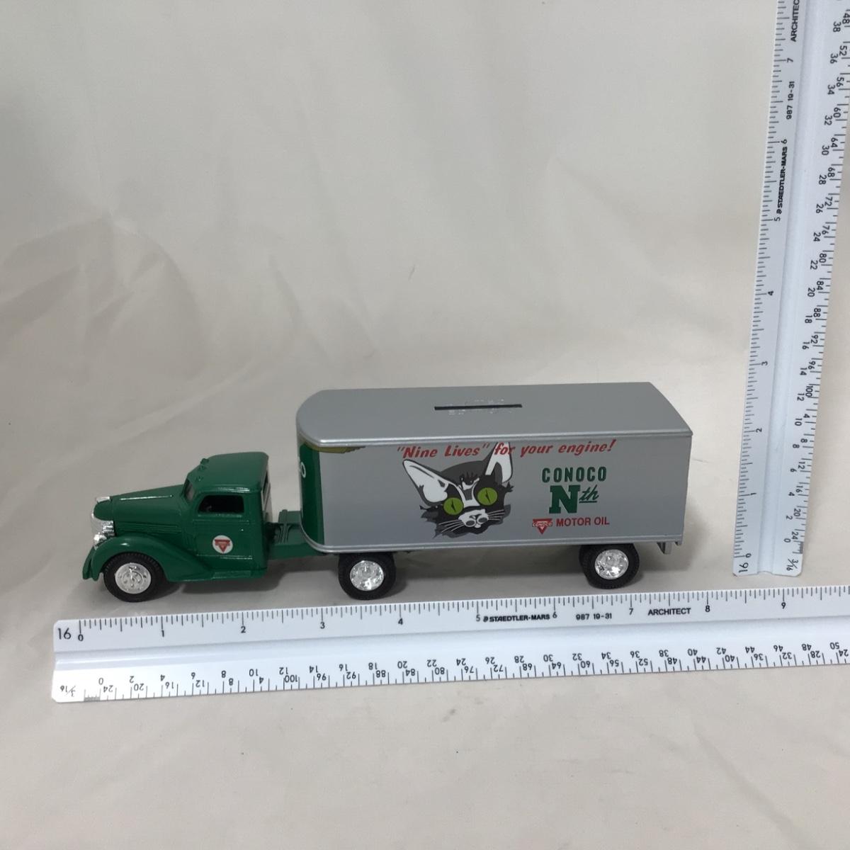 Three car collector pieces. One Cheez It’s Semi, one BP toy race car carrier, and one Conco semi. Please see photos for details and condition. ::: Shipping is available on this lot. If you require shipping you must let us know at the close of the auction. We will coordinate with you after the item has been won. Shipping fees will include insurance up to or exceeding the value of all items being mailed. If you have any questions regarding this lot please contact the auctioneer either via this website, by direct email or by phone. PICK UP TIMES and other important information can be found in the TERMS and DESCRIPTION of the auction. Please take a look for pertinent information. Thanks!