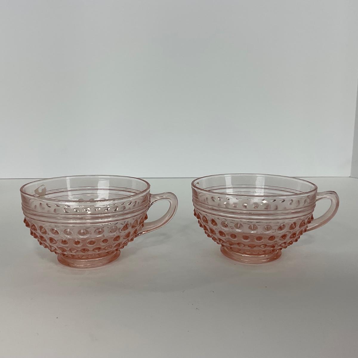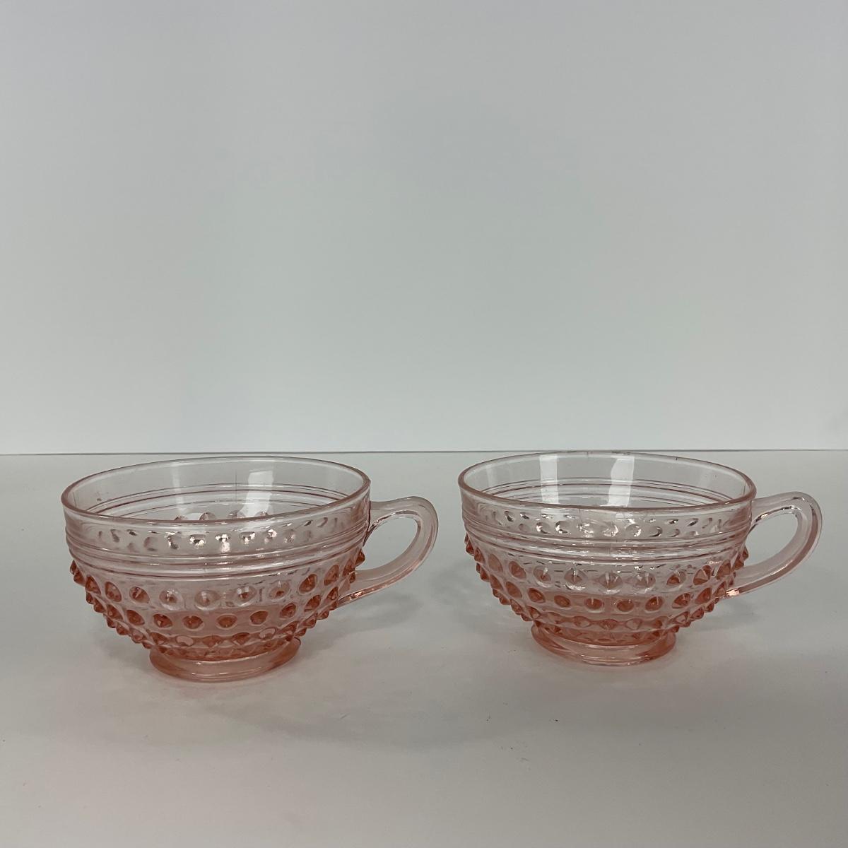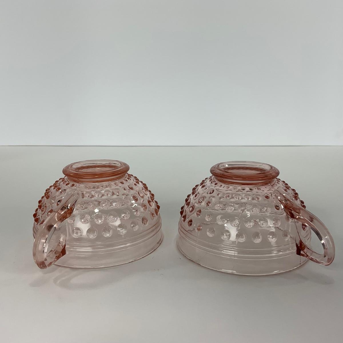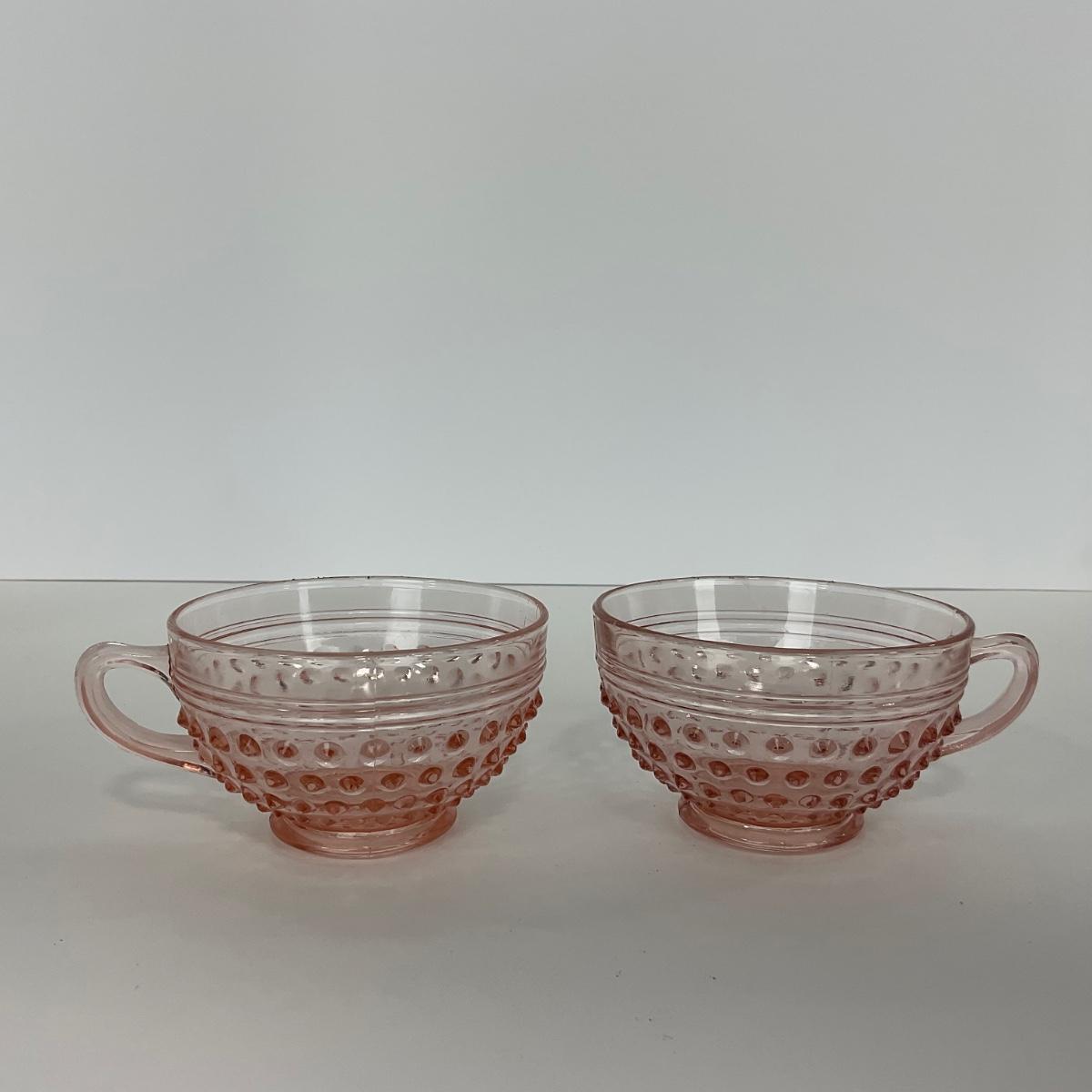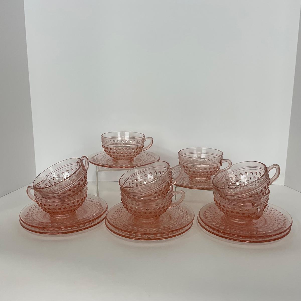 -216- GLASSWARE | Pink Hobnail Hocking Glass Co. | Cups & Saucers