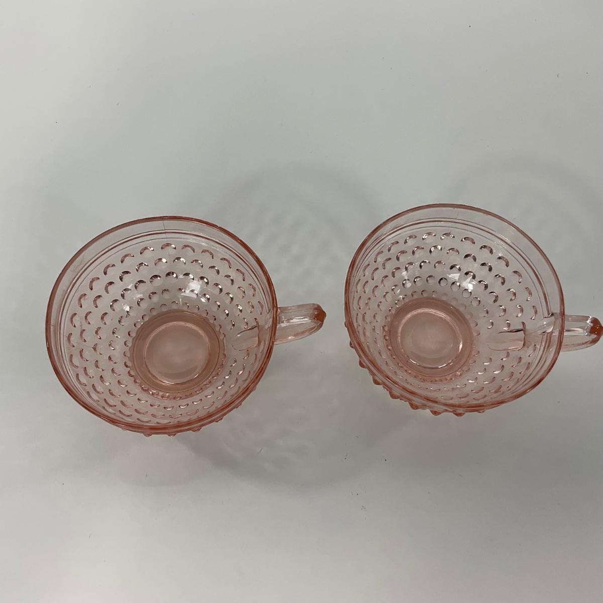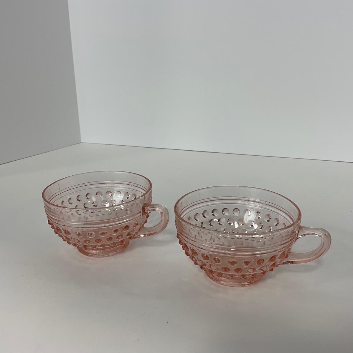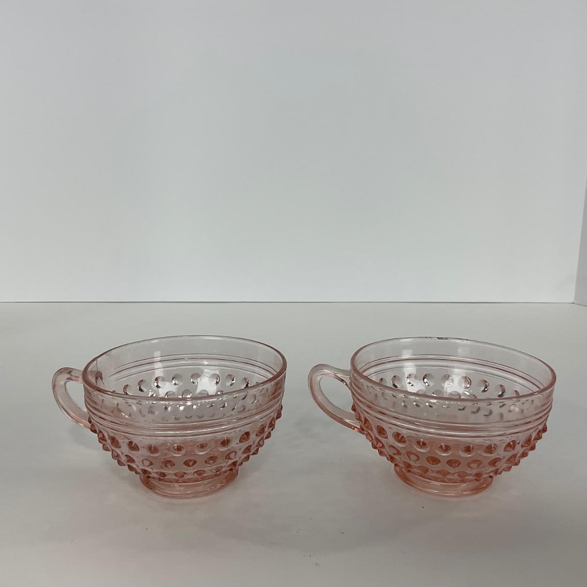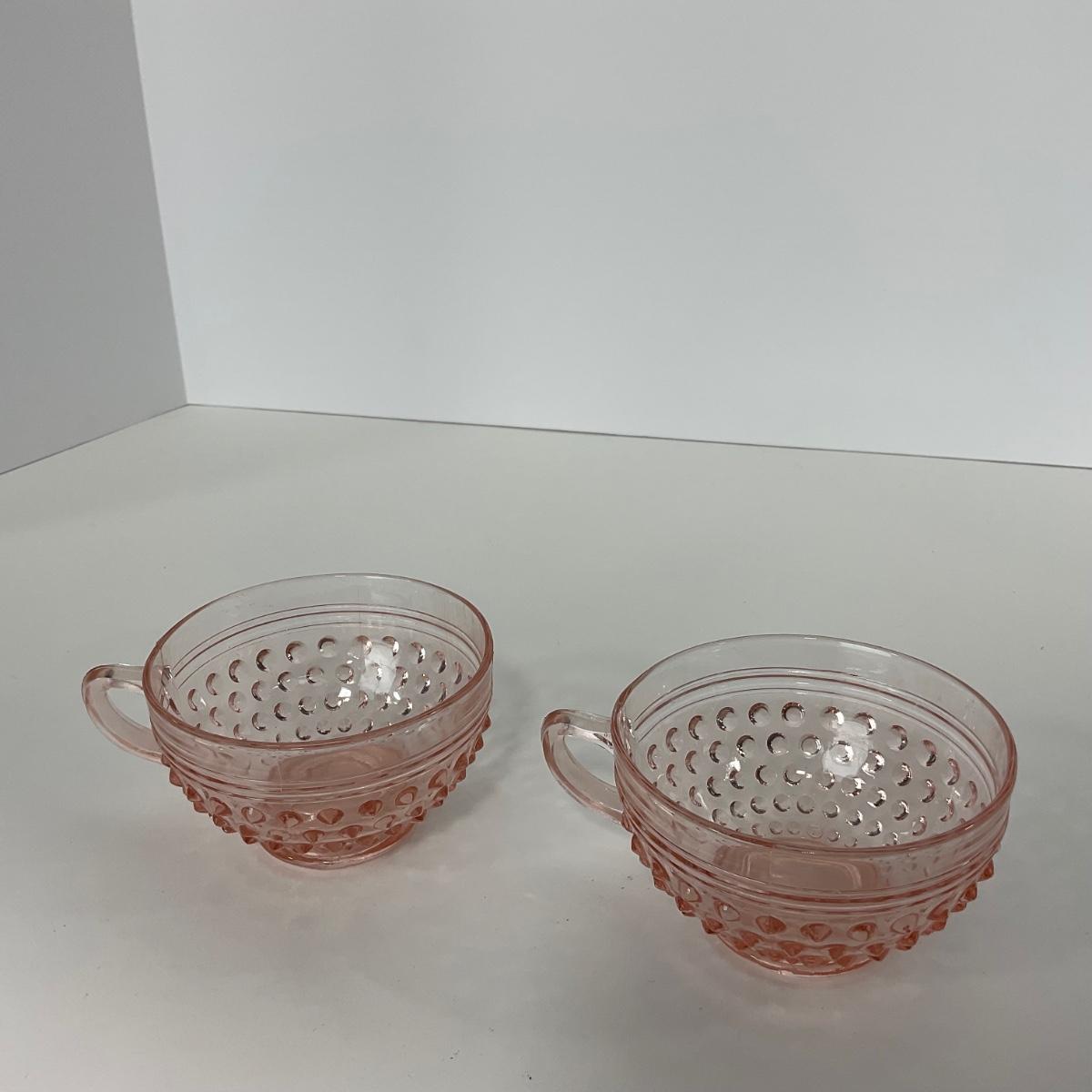 -216- GLASSWARE | Pink Hobnail Hocking Glass Co. | Cups & Saucers