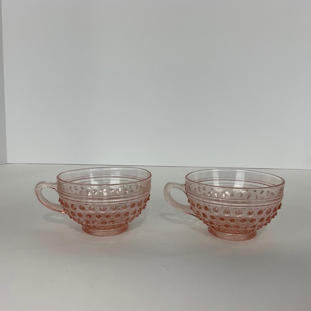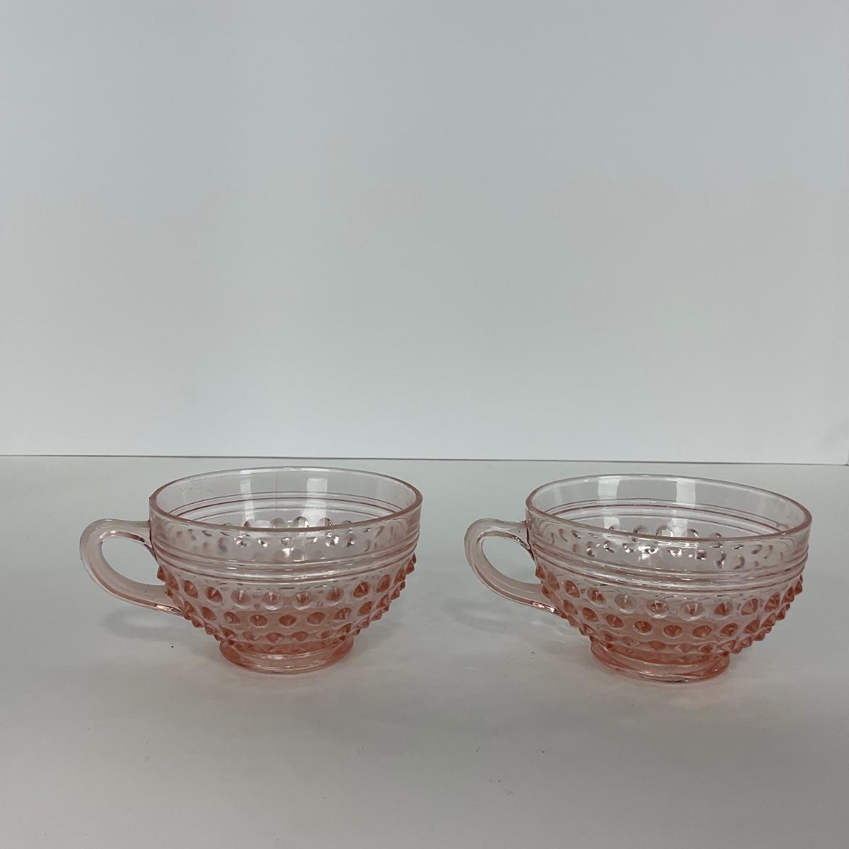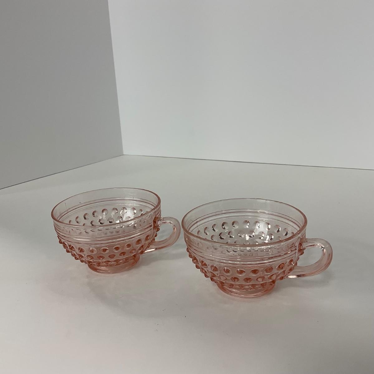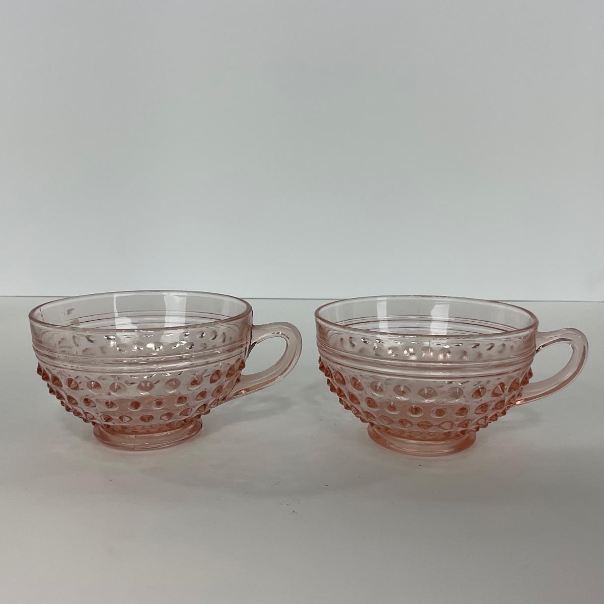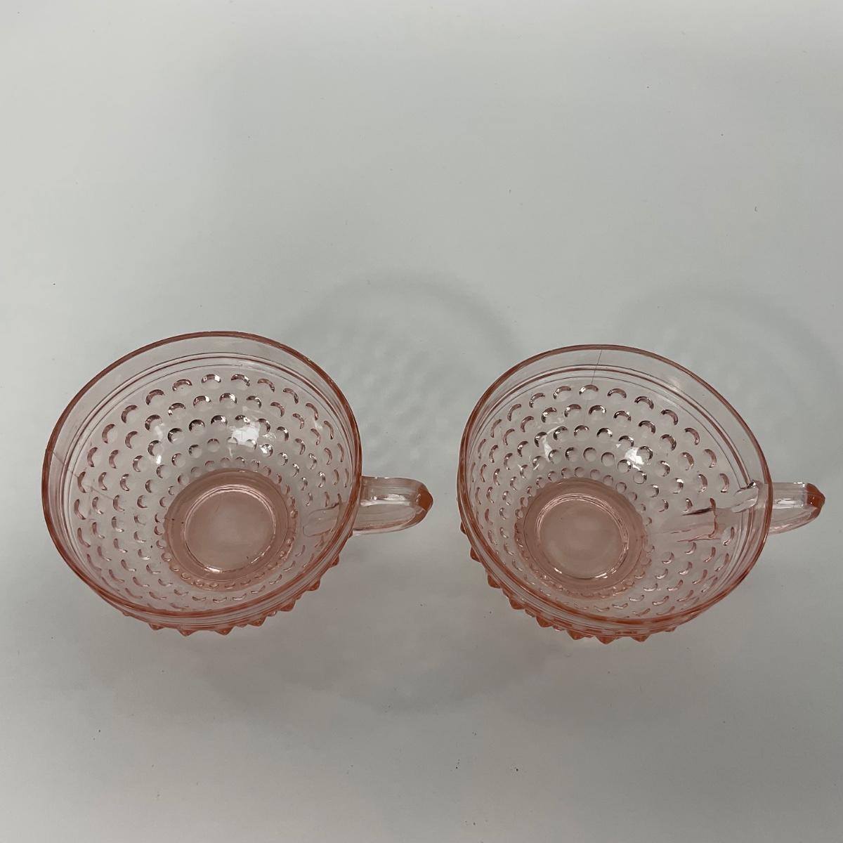 -216- GLASSWARE | Pink Hobnail Hocking Glass Co. | Cups & Saucers