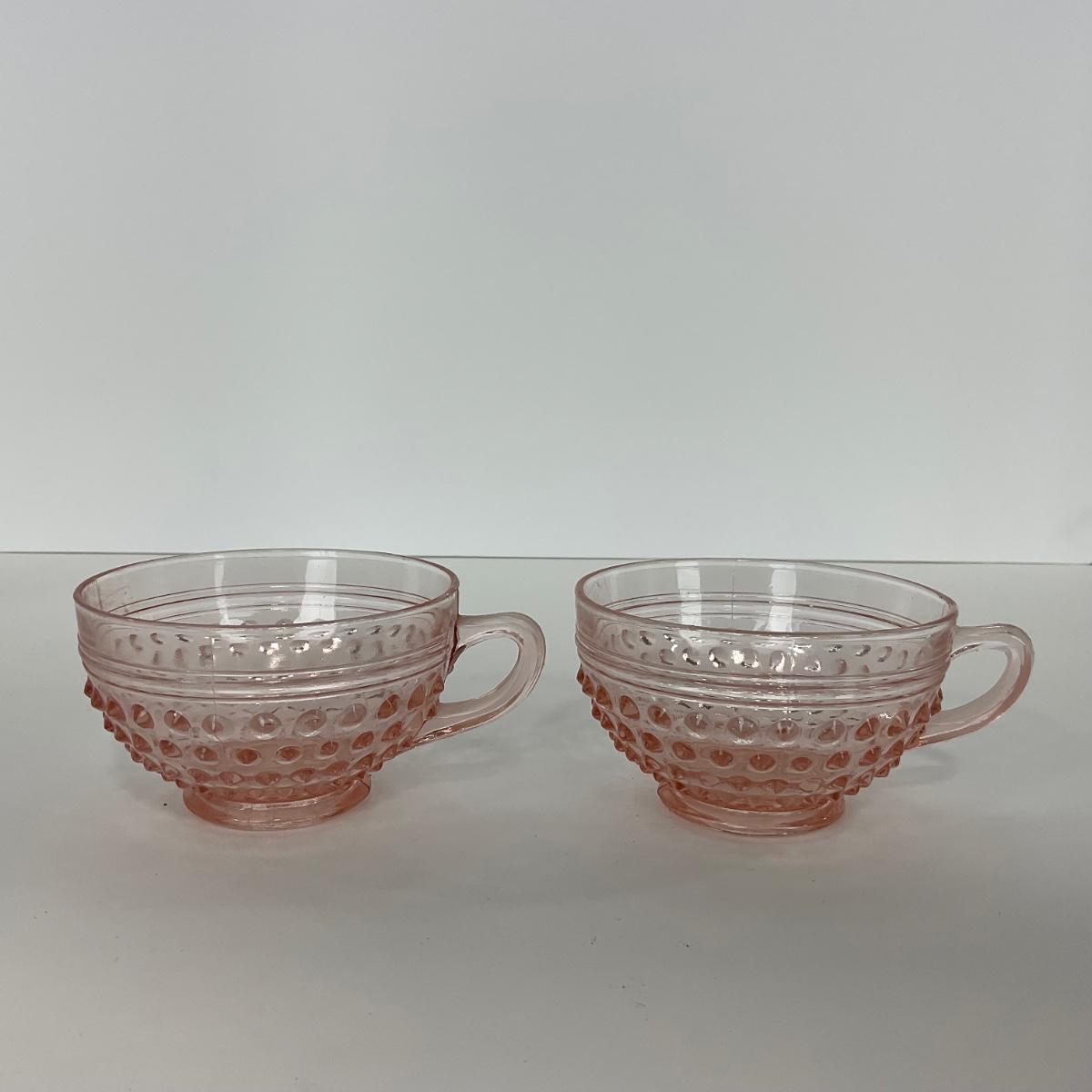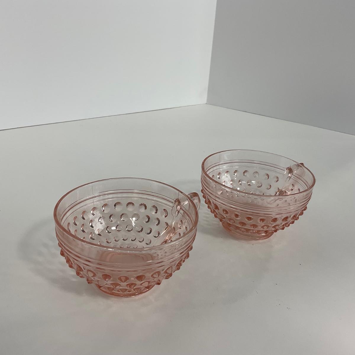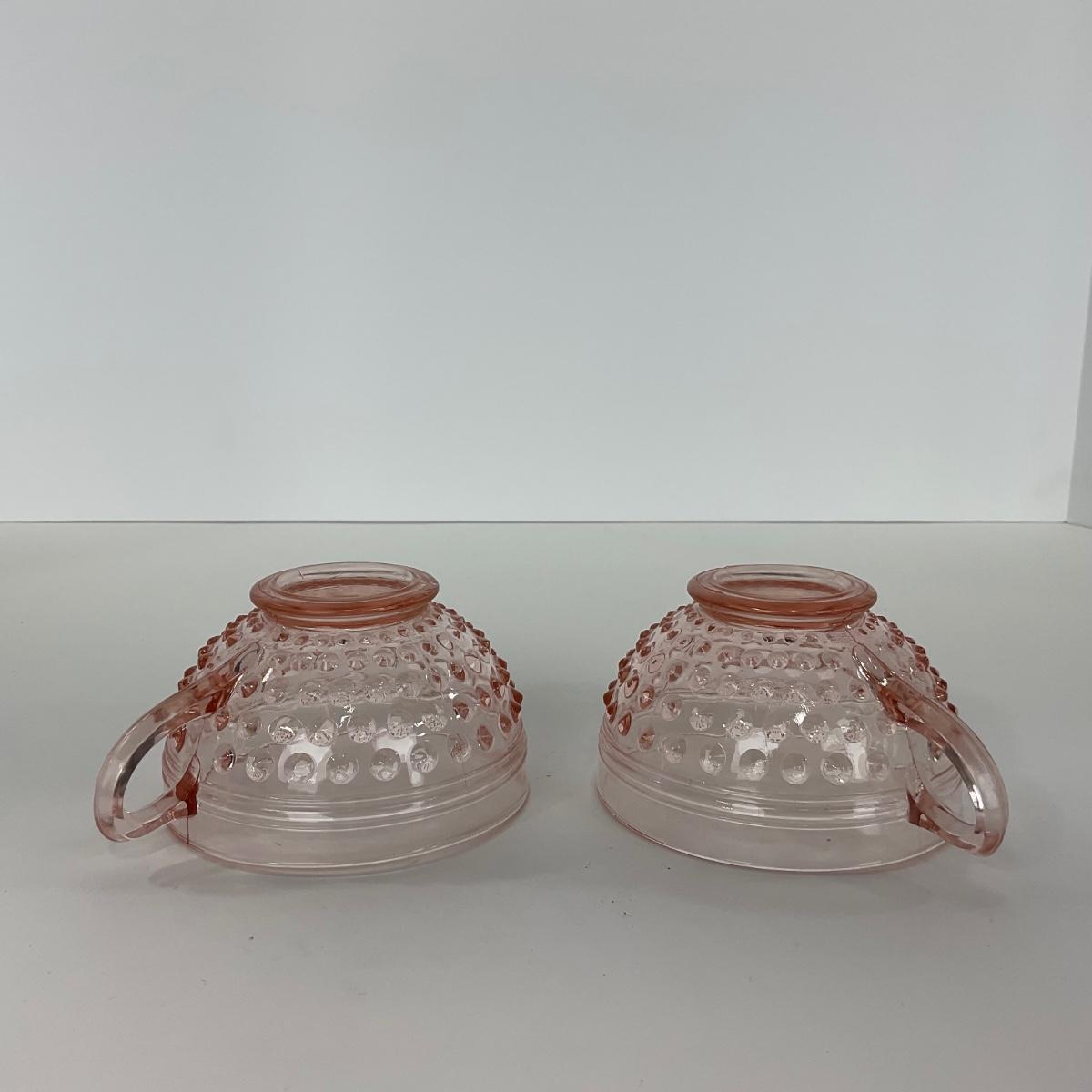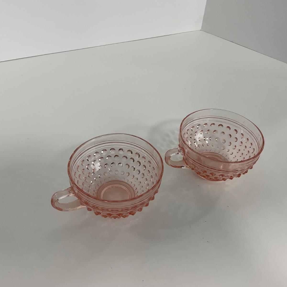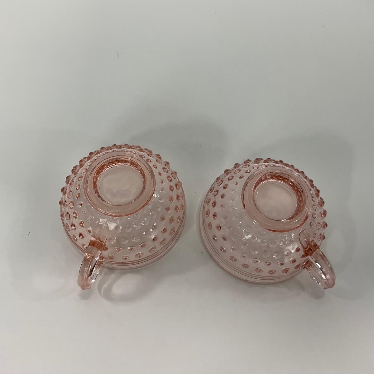 -216- GLASSWARE | Pink Hobnail Hocking Glass Co. | Cups & Saucers